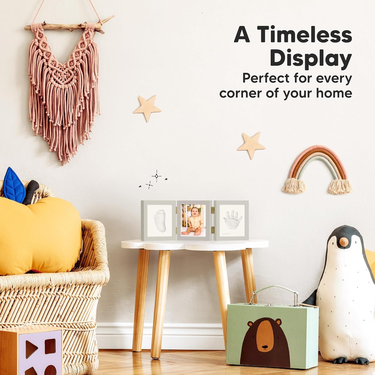 - Sturdy Wood Frame, Real Glass Cover - Our tri-fold baby handprint footprint keepsake kit maintains its pristine condition for years to come. Itβs a lovely, everlasting newborn keepsake for your baby room decor. A must-have newborn baby essentials.