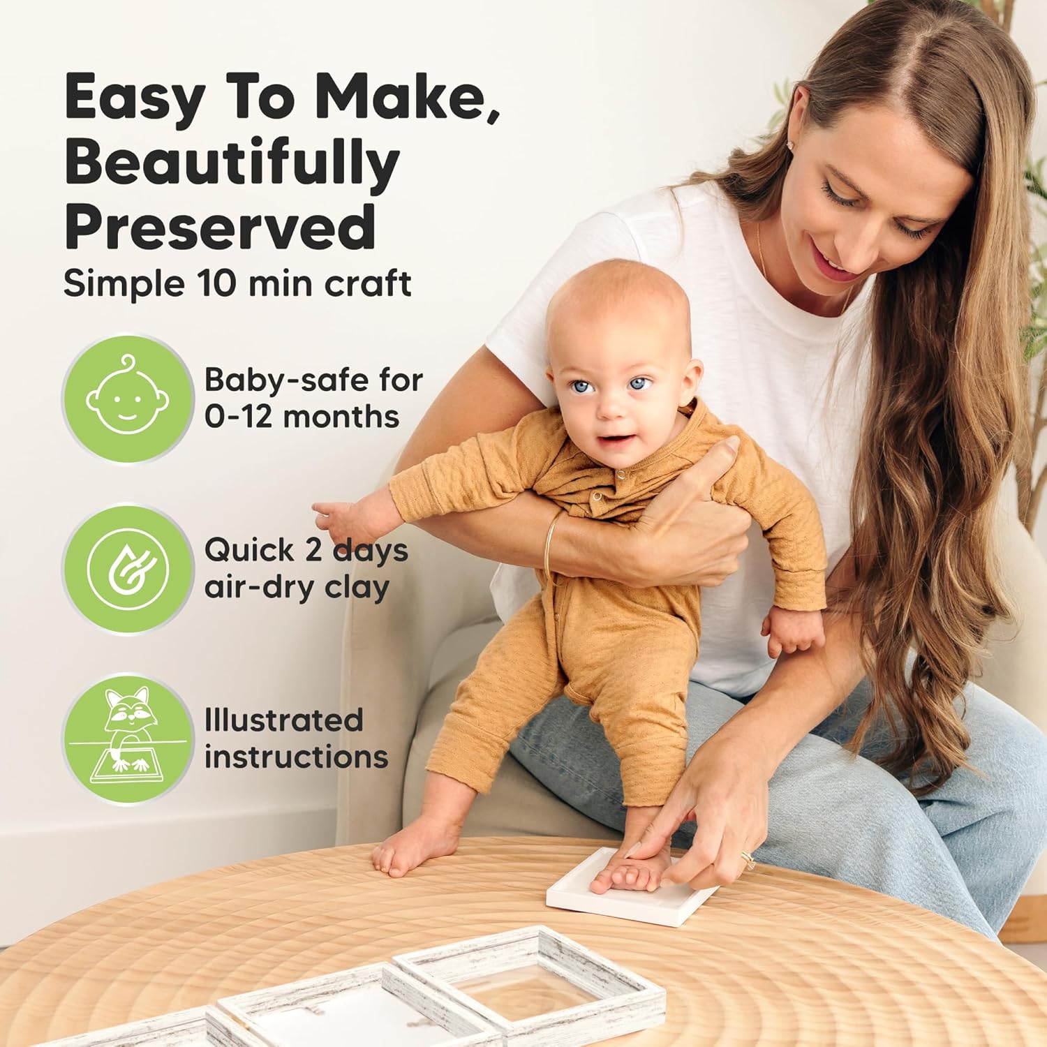 - 100% Safe Food-Grade Clay - Our baby picture frame features 100% baby-safe air-dry clay, perfect for preserving your baby prints. Our premium material ensures durability, the baby handprint and footprint maker will look flawless for years to come.