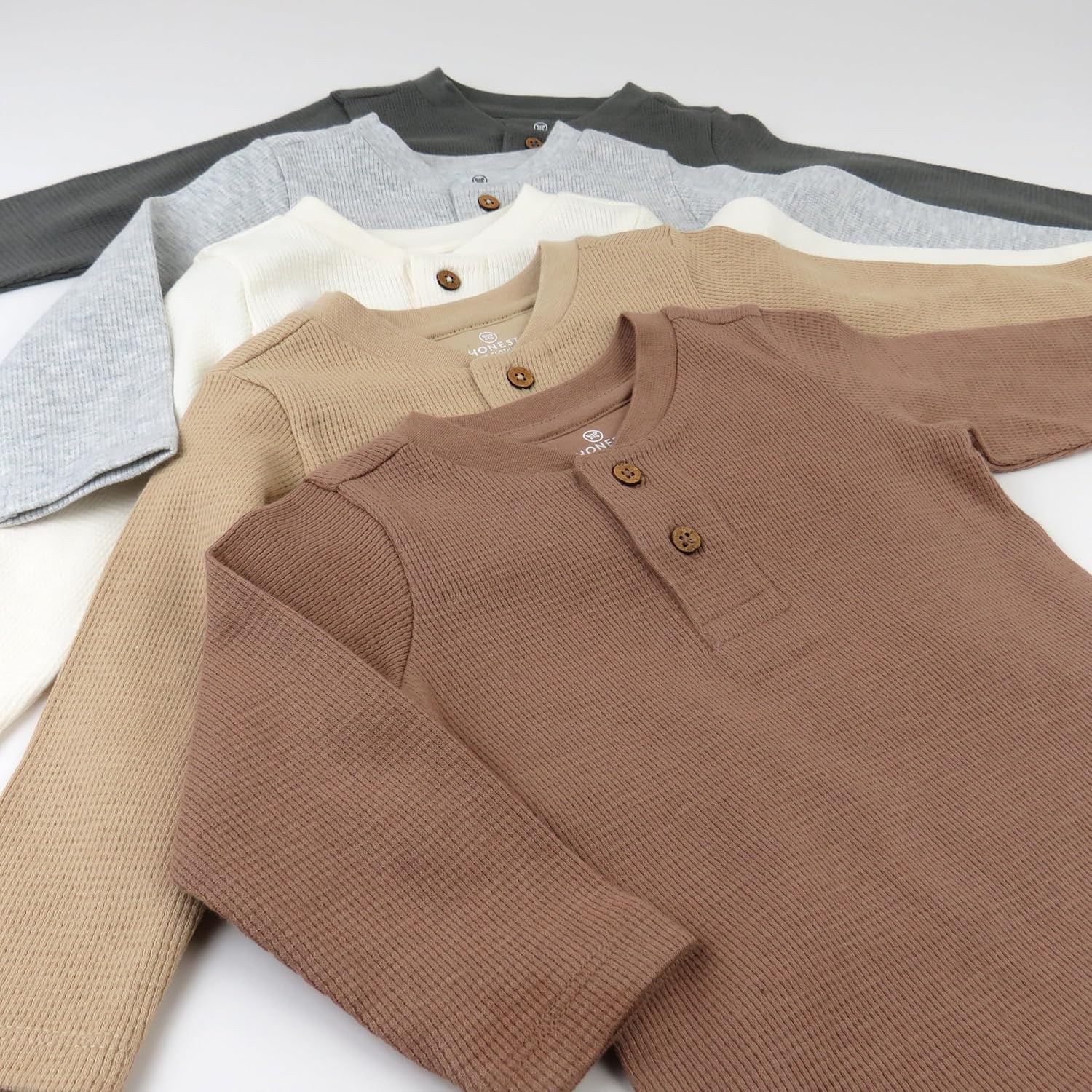 HonestBaby 5-pack Waffle Henley Long Sleeve Shirts 100% Organic Cotton for Infant Baby and Toddler Boys, Unisex