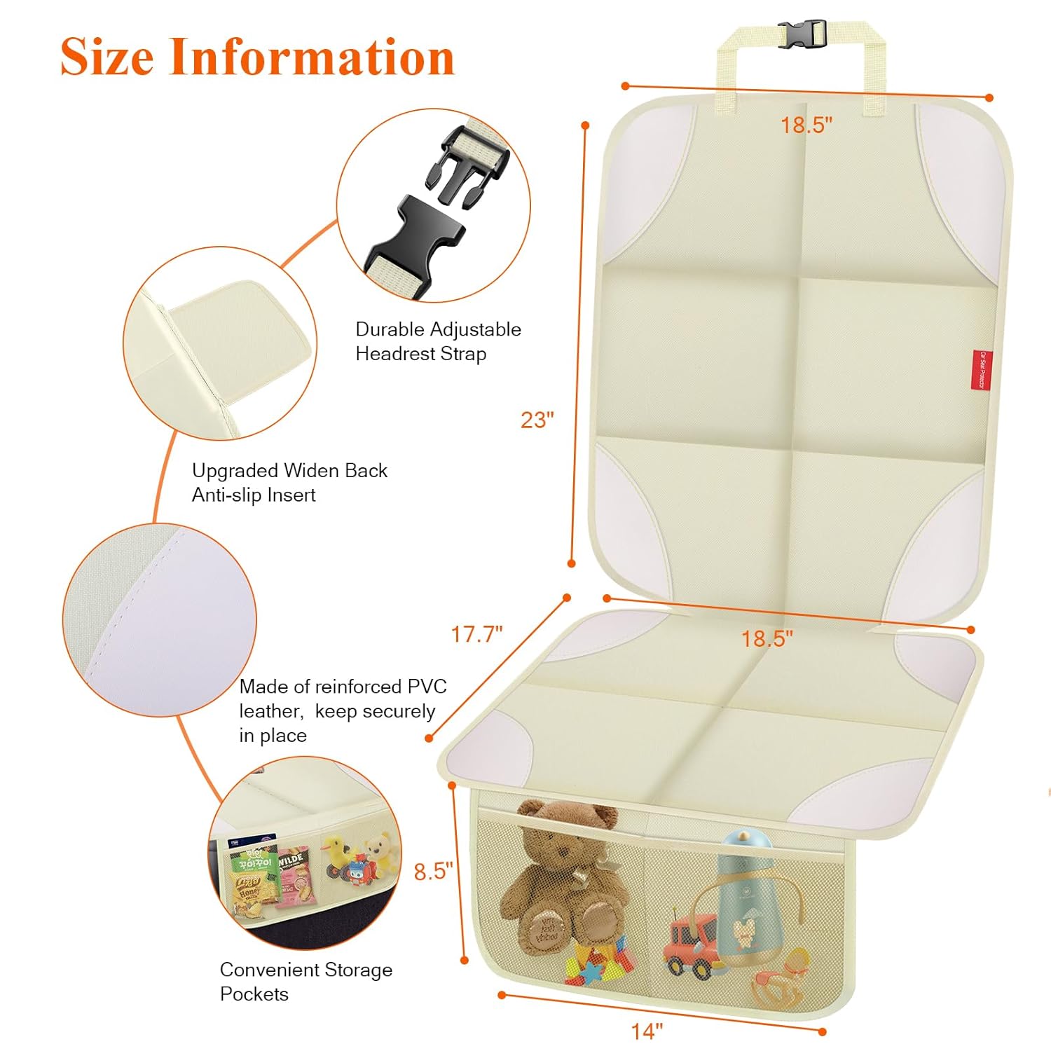 - Keep Your Car Clean with Car Seat Protectors: Whether you're trying to avoid stains, pet fur, or baby car seat indents on your upholstery, our car seat protector will meet your needs. Crafted from durable 600 D oxford fabric with thick foam padding inside, reinforced leather corners, and a water-resistant layer, not only prevents imprint from child car seats, but also prevents marks and scratches from toys and pets kicking the car seat, effectively protect the leather and cloth car seats from imprint