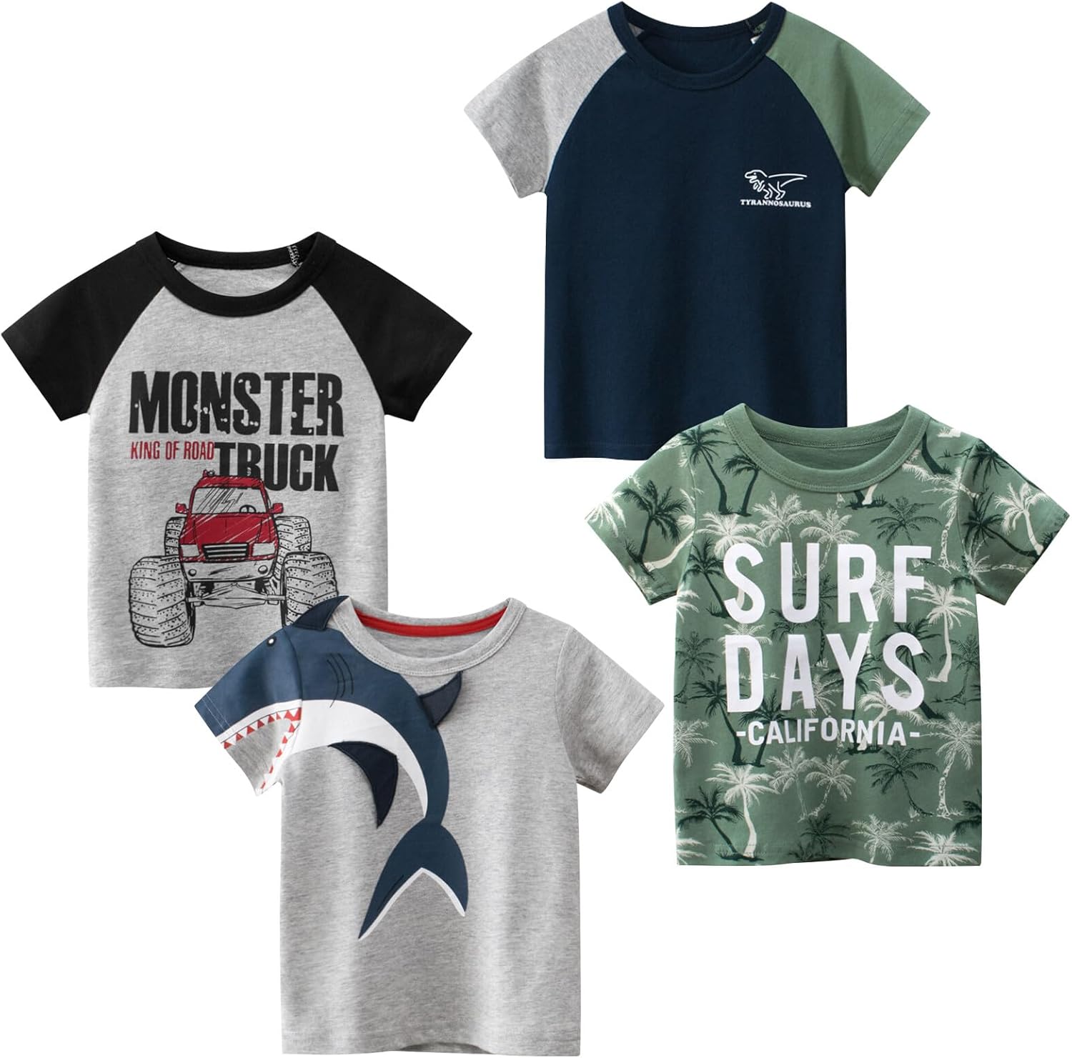 Boys' 4-Pack Excavator Short Sleeve Crewneck T-Shirts Top Tee Size 2-7 Years Toddler Boys' Value Pack Cotton T-Shirt