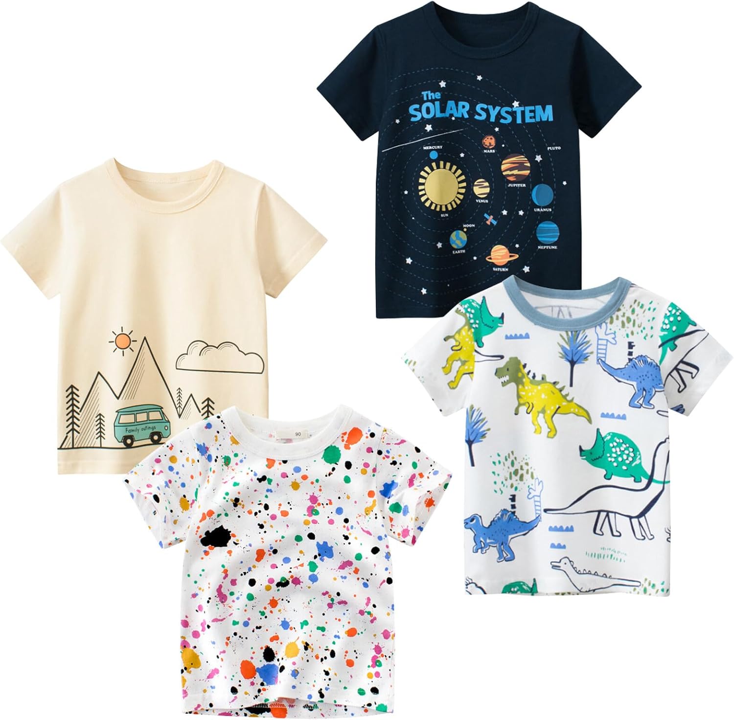 • 【Theme 5-Packs】We follow the T-shirt 3D printing of the pattern of this new batch of 2023 T-shirts into different combinations of three pieces, there are cars, dinosaurs, aliens, solid colors, stripes and other options.