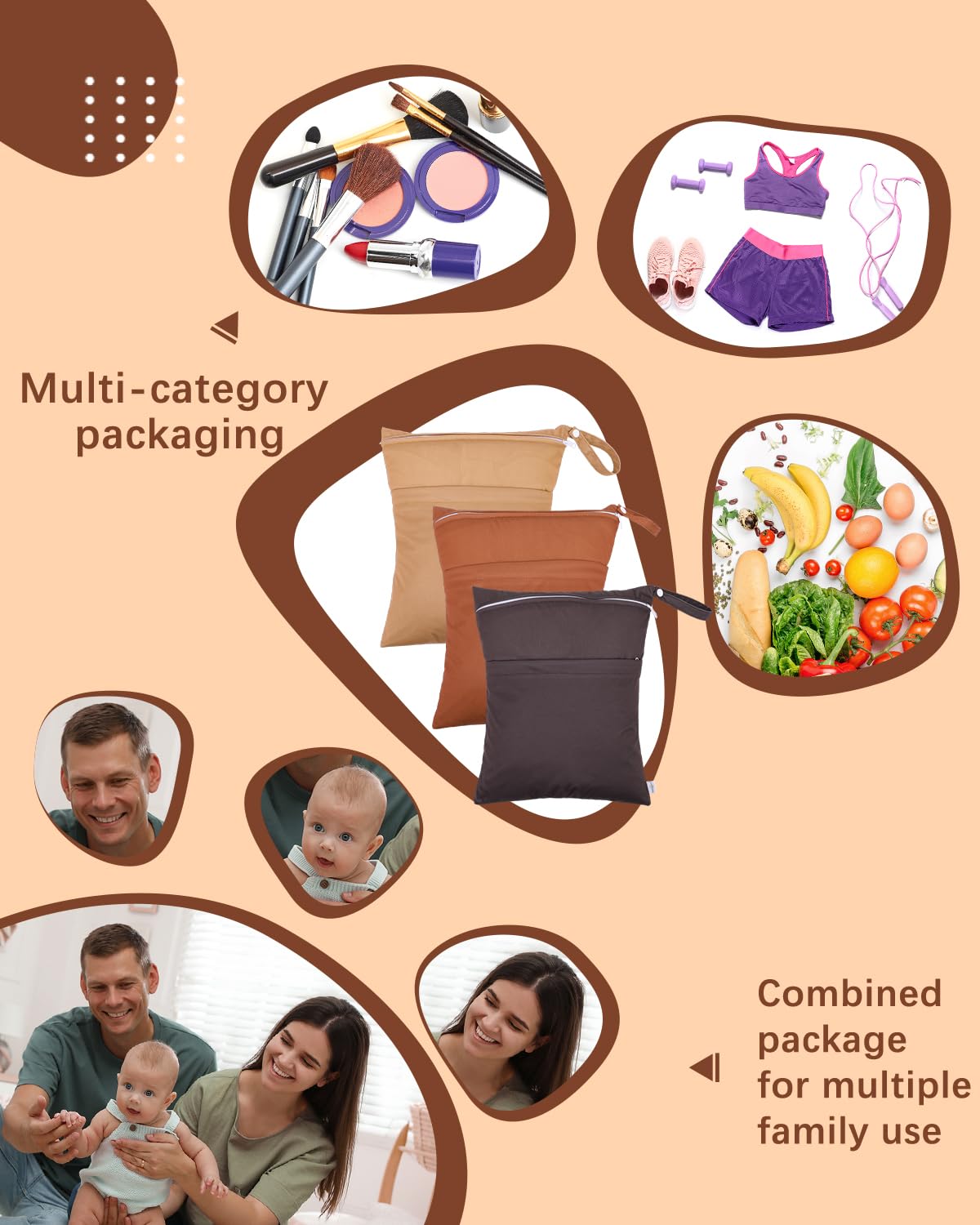 - Multi-Function: You will receive 3 pack wet bags, which size is They are perfect for preserving cloth diapers and other baby products, and they can also be used as swimsuit bags, bikini bags, bathing suit bags, travel bags, gym bags, storage bags, cosmetic bags, handbags, wash bags, organizer bags, breast pump parts bags, even as picnic bags. They are ideal for baby shower gift, get yours today!