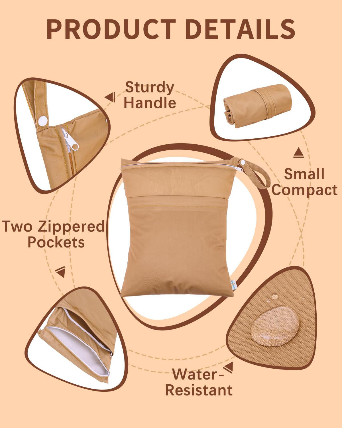 - Double-Pocket Design with Snap Handle: Each wet bag contains two pockets, which comes with two zip closures to ensure that nothing will drop out of the bag and better to keep the clean and dirty items separately. With the snap handle design, you can unbutton the haddle and easily hang the bag on the stroller or door knobs, towel rod ect. anywhere you want.