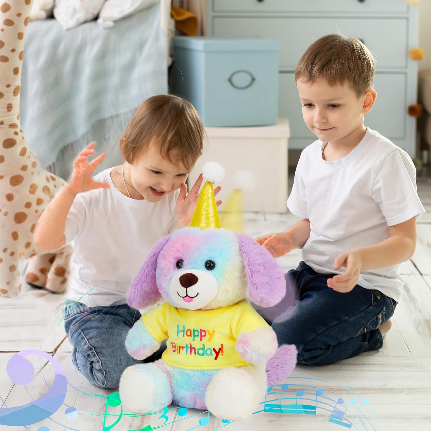 - EXCELLENT DESIGN: This birthday dog plush toy is elaborately designed, the big-eyed dog plush toy has an exquisite appearance. The plush toy also has a cute hat and clothes. This singing dog toy will be a birthday surprise for kids.