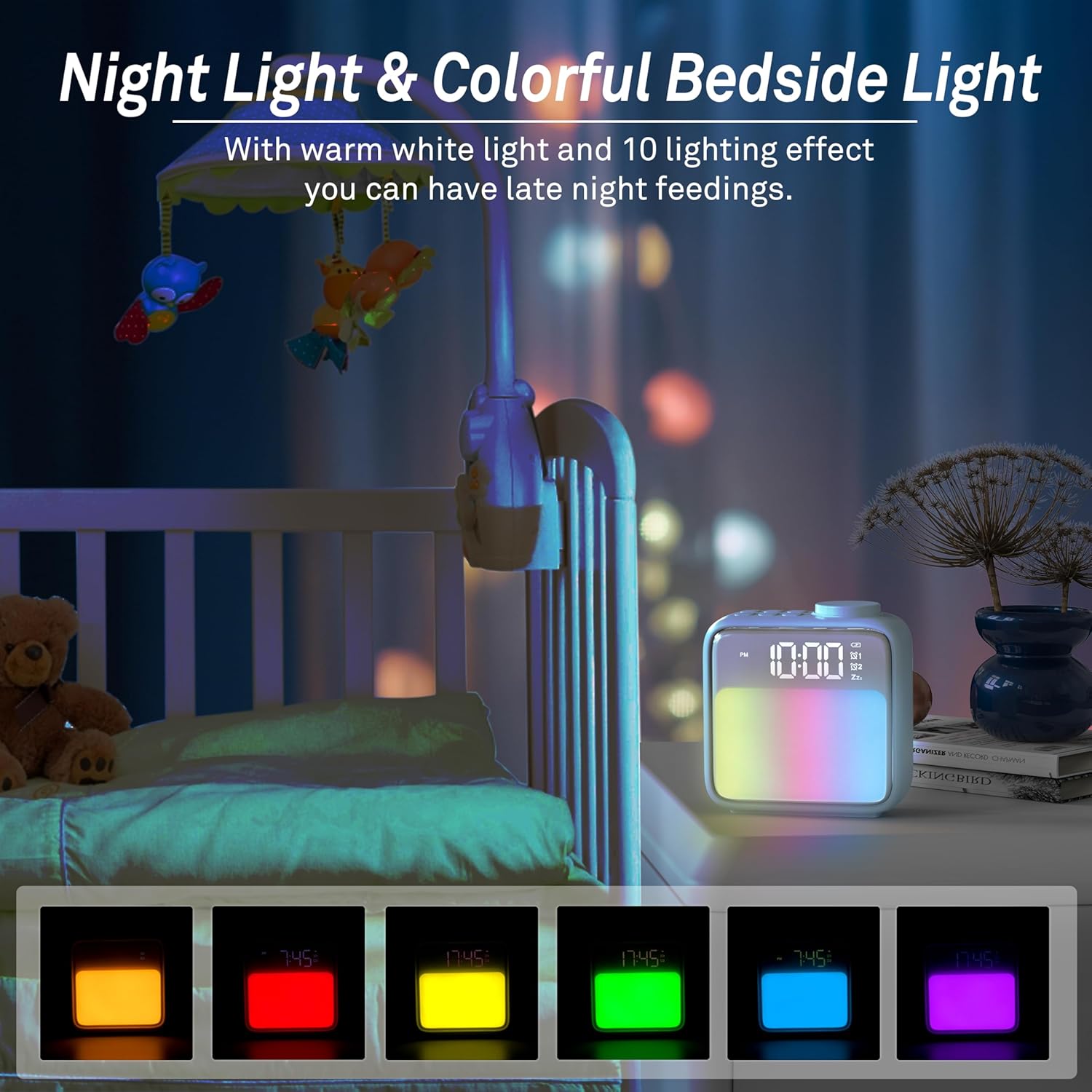 - Latest Alarm Clock - This upgraded white noise alarm clock night llight combines 6 scene simulation lighting modes and 6 soothing songs, providing a better sleep and natural waking experience. Unlike other products, this alarm clock offers 6 scene simulation lighting effects, enriching your waking routine. It is rechargeable and supports both 12-hour and 24-hour time formats to cater to different habits. Designed for all, with a particular focus on heavy sleepers and children.