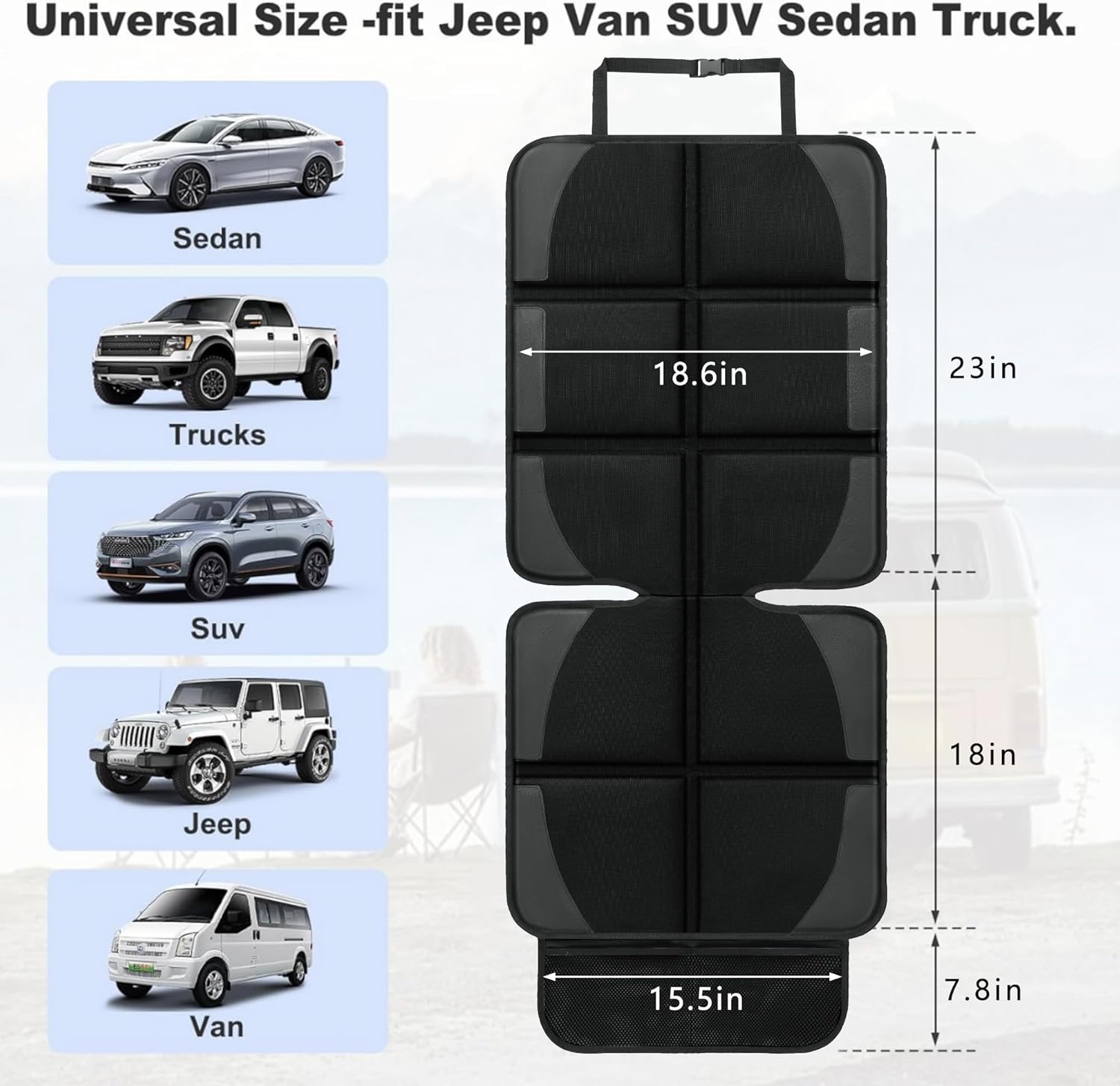 - Car seat protector covers for baby carseat made of waterproof durable 600D polyester with thick padding. Baby car seat cover can protects the back seat of the car from wear and tear of the child seat, make us comfortable while traveling