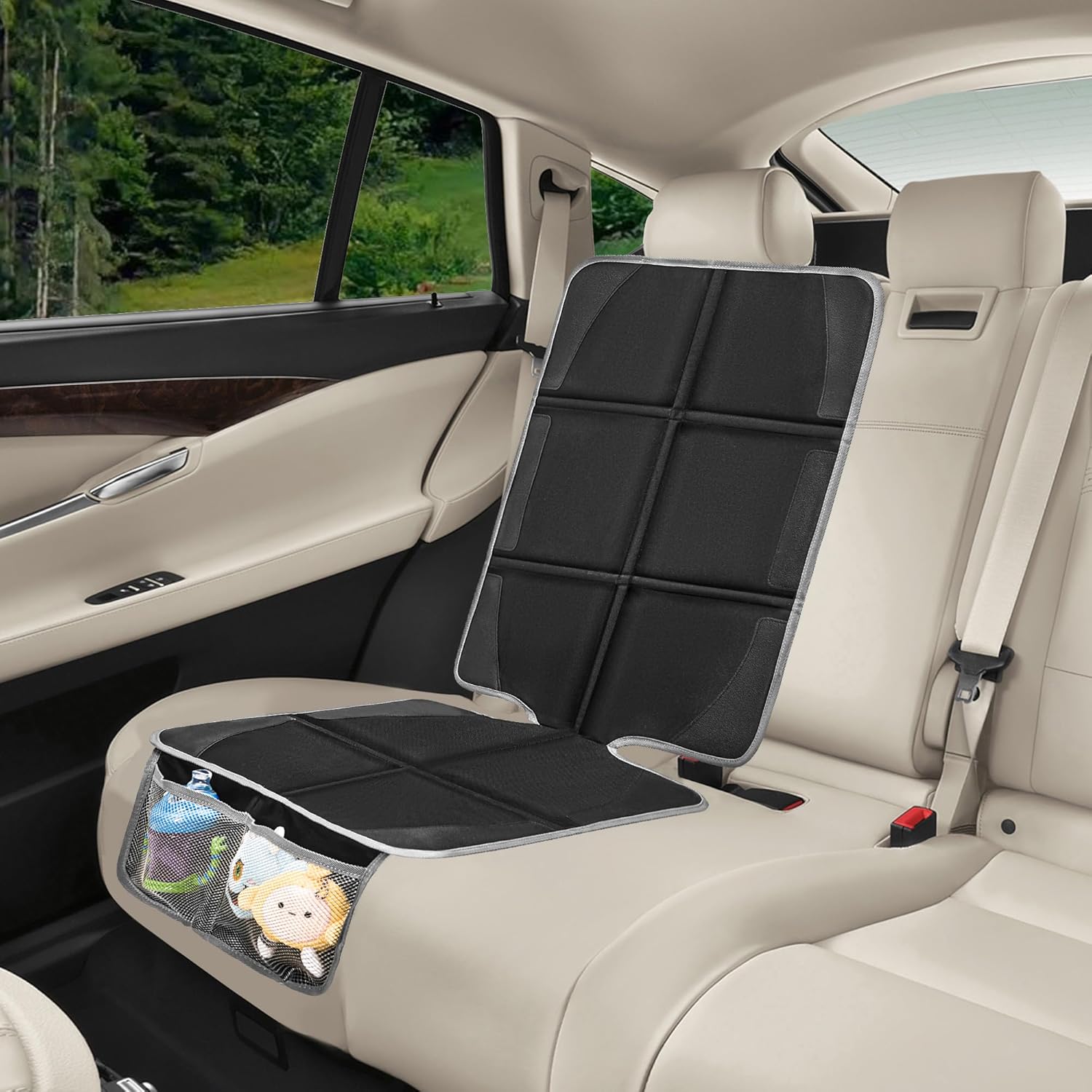 - Car seat protector covers for baby carseat made of waterproof durable 600D polyester with thick padding. Baby car seat cover can protects the back seat of the car from wear and tear of the child seat, make us comfortable while traveling