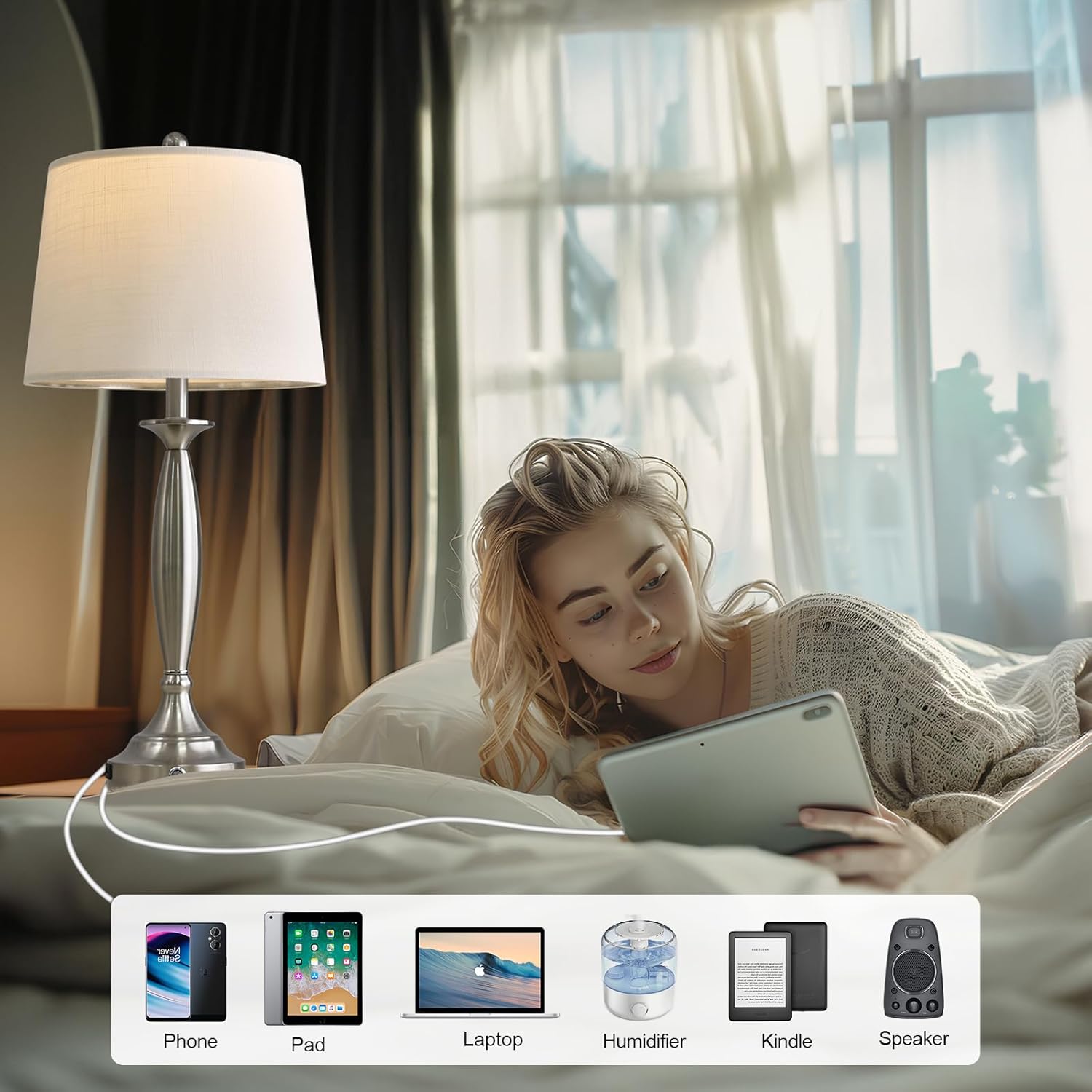 - 3-Way Dimmable Touch Lamps: Our bedside lamp set of 2 enables you to tap touch control lamp switch of the base to adjust 3 level brightness and turn it on/off. It can make you get rid of the trouble of fumbling the switch in the dark, especially when you wake up in the middle night, perfect for the nightstand, bedroom, and living room. Super convenient for your daily use.
