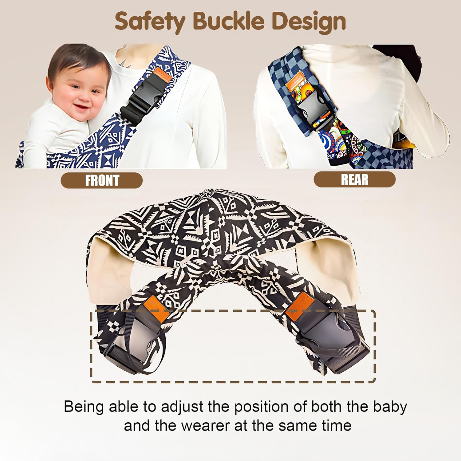 - [Safety Buckle]:There are safety buckle designs on the front and back of the baby Carrier to ensure safety during use.