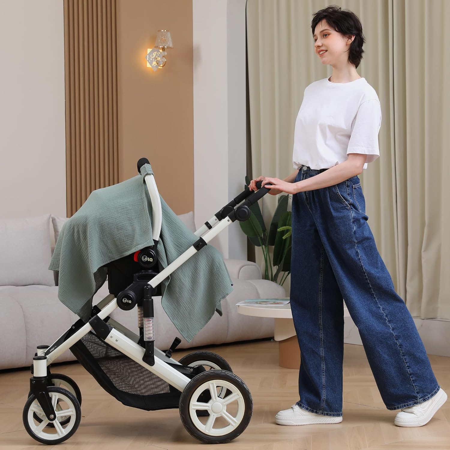 - FULL COVERAGE PROTECTION: Our MULTI-USE carseat canopy cover to keeps your baby from sunlight, summer heat and wind, on- looking stranger. The Cotton material also making sure your baby gets enough air and is not over-heating.