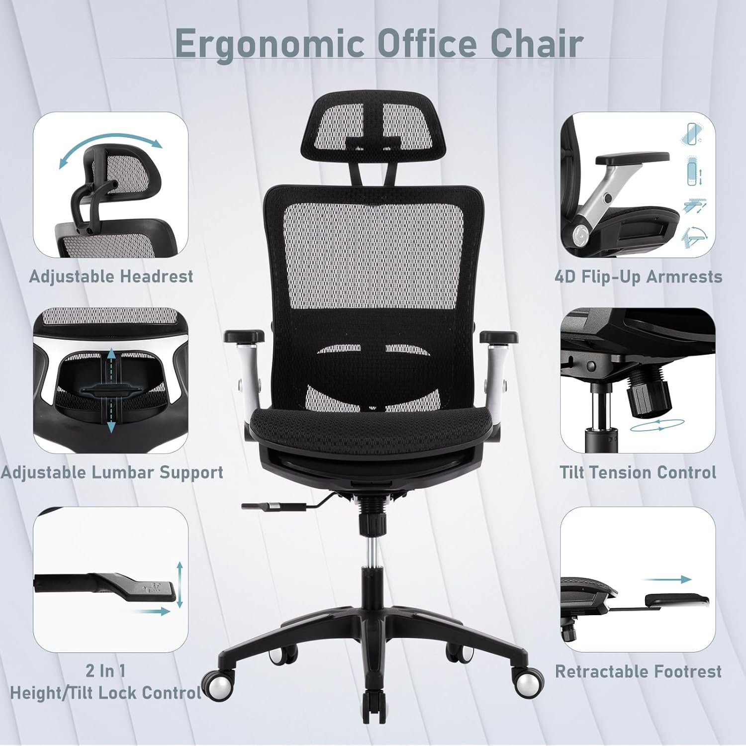 - BREATHABLE MESH TO STAY COOL ALL DAY:This office chair with foot rest is built with breathable mesh, ensuring optimal airflow to keep you cool during long work sessions. The mesh office chair with foot rest is ideal for maintaining comfort, even in warmer environments.