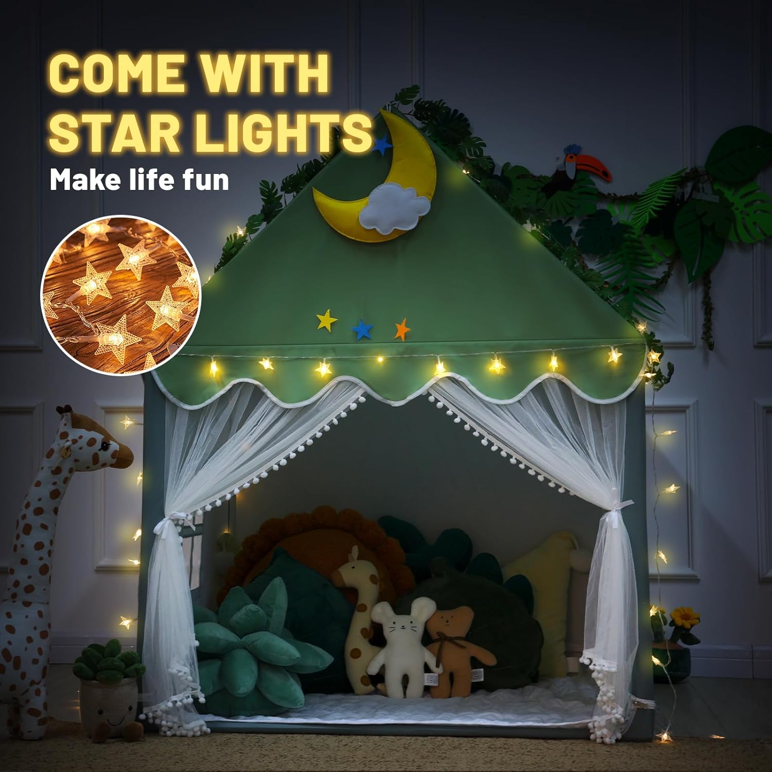 Wilwolfer Kid Tent with Mat, Star Lights - Kids Play Tents for Toddlers Kids Tents Indoor Playhouse - Princess Tent for Girls Toy House Gift (Green with Mesh)