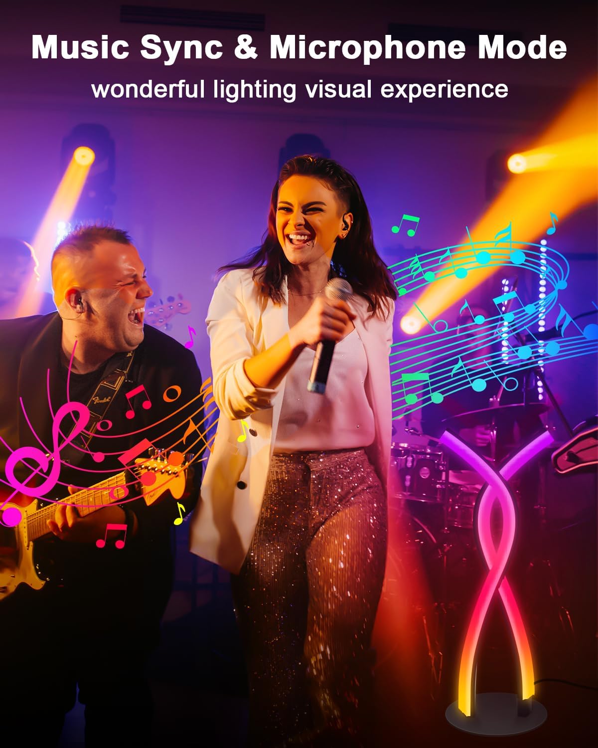 - 【Music Sync Colour Changing Lamp】Smart led table lamp has a high sensitivity microphone built in, you just need to turn on the microphone mode through our app, the color of the led table lamp will change automatically with the beat of the music or your voice. Whether you want to start a wild party, immerse yourself in exciting and intense computer games, or create romance, this led table lamp will give you a vivid and realistic immersive experience