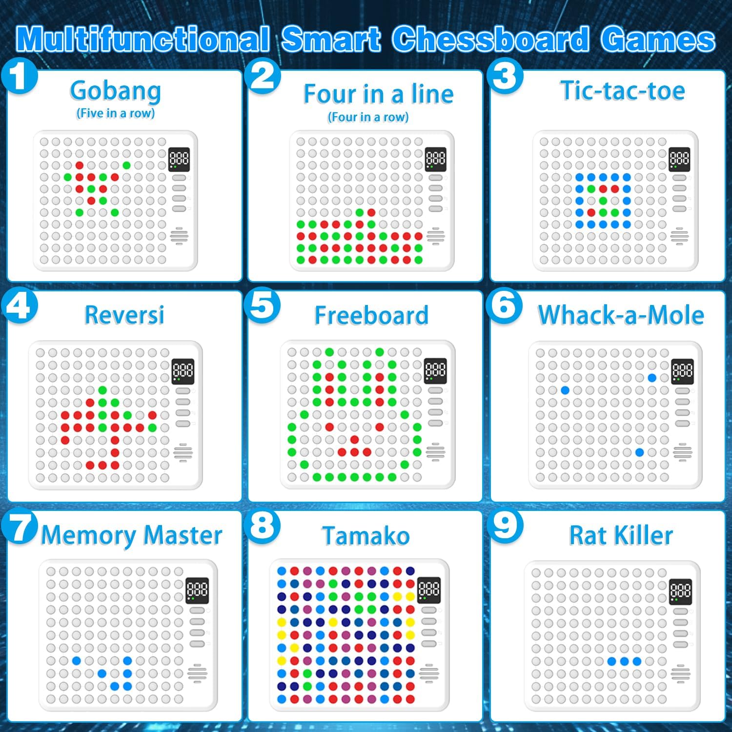 Dollox Kids Smart Chessboard Games, Built-in 9 Strategy Board Games Toys 5 in a Row Game, 4 in a Row, Tic Tac Toe, Memory Master AI Electronic Smart Board Game for Travel Party Family Night Gifts