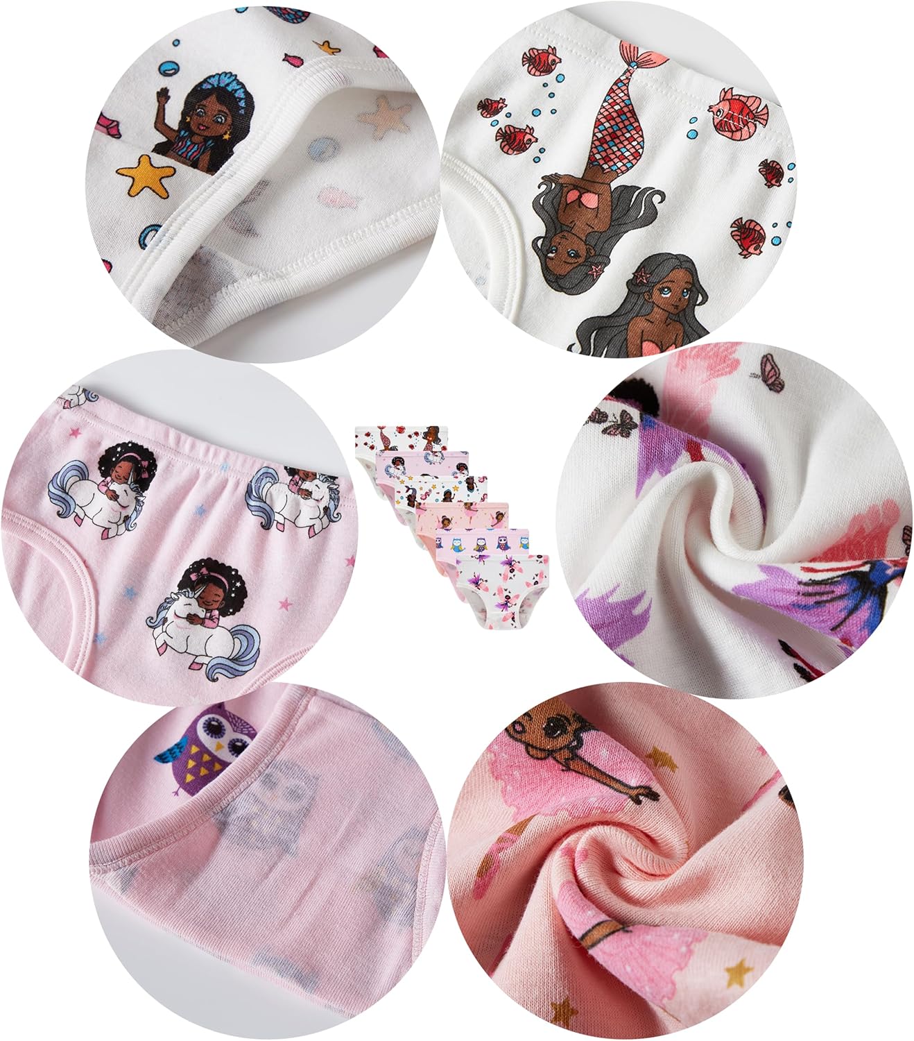 Cadidi Dinos Little Girls' Soft Cotton Underwear Kids Cool Breathable Comfort Panty Briefs Toddler Undies(Pack of 6)