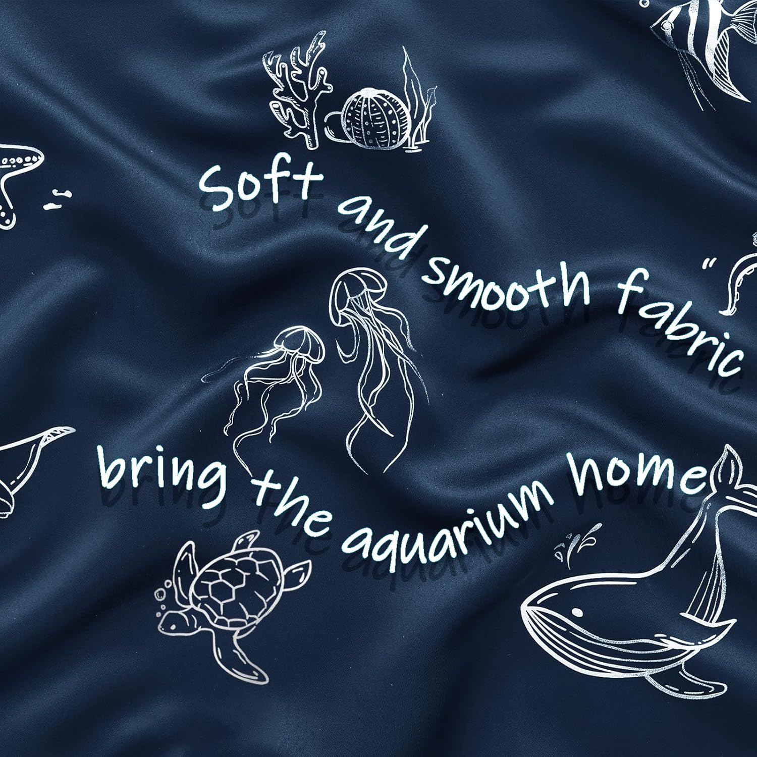 Vangao Kids Curtains for Boys Bedroom Kids Blackout Curtains 63 Inch Length Ocean Aquarium Nursery Drapes for Girls Bedroom Silver Sea Animals Print Thermal Insulated Drapes, Navy Blue 2 Panels