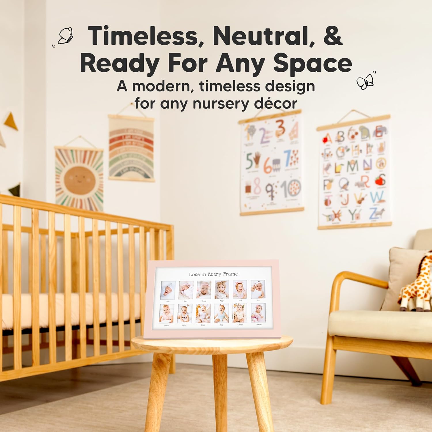 My First Year Photo Frame,12 Months Baby Picture Frame for Newborn Girl, Boy-Baby Shower Gifts Keepsakes,Monthly Baby's One Year Birthday Milestone,1st Nursery Photo Collage Display Board (Petal Pink)