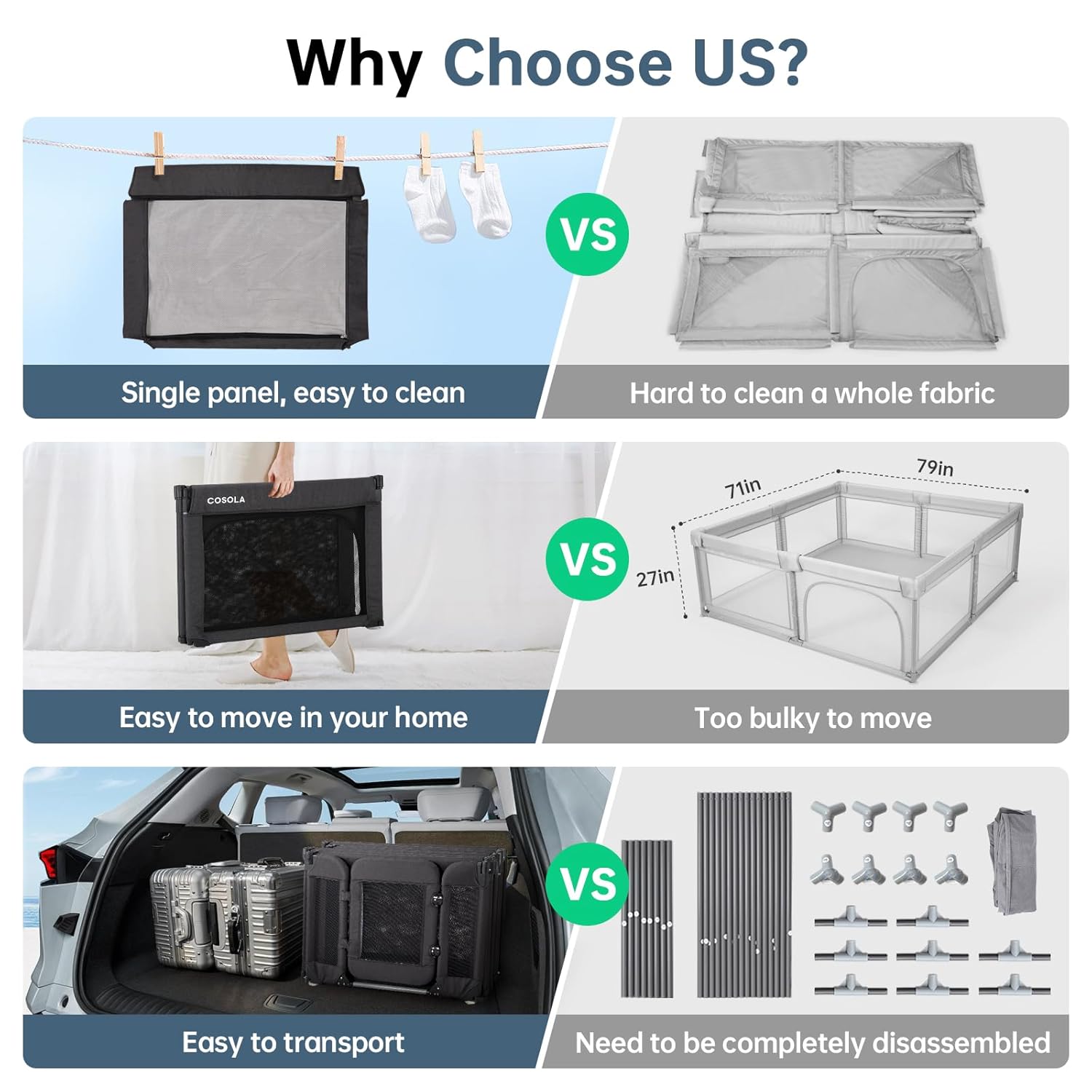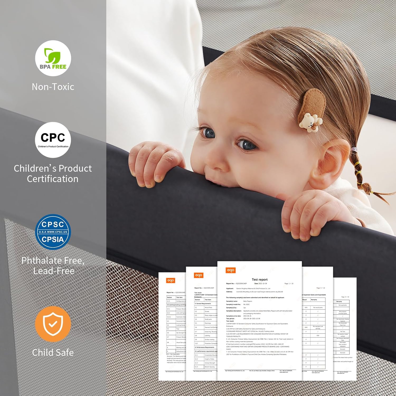 - [Extra Large Space]: With dimensions of 79 x 71 inches,the baby playpen provides spacious space for both parents and toddlers, ensuring a safe and fun environment for your baby to explore whether indoors or outdoors.