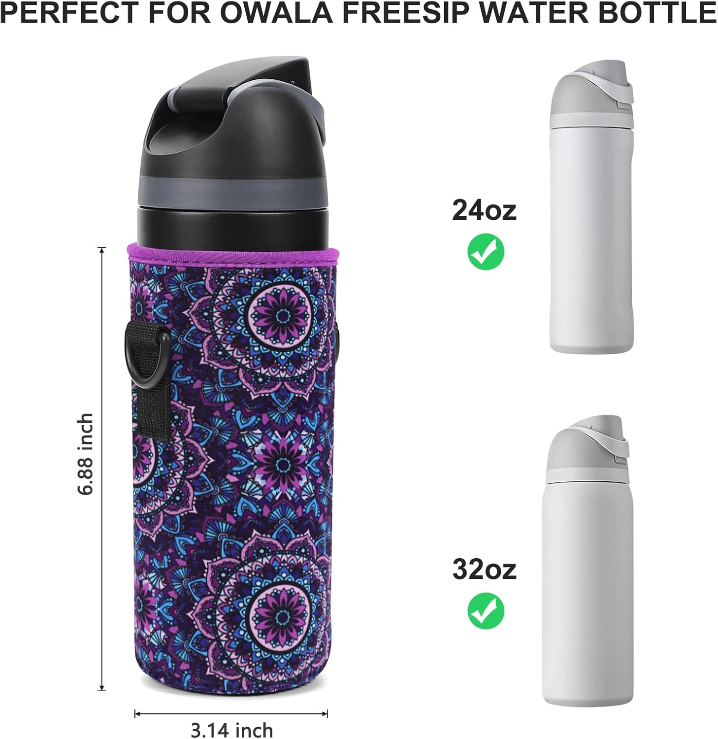 Neoprene Water Bottle Carrier Bag with Adjustable Shoulder Strap for Owala 24 OZ Tumbler, Insulated Water Bottle Cover for Owala FreeSip Insulated Water Bottle (Mandala, 24 OZ)