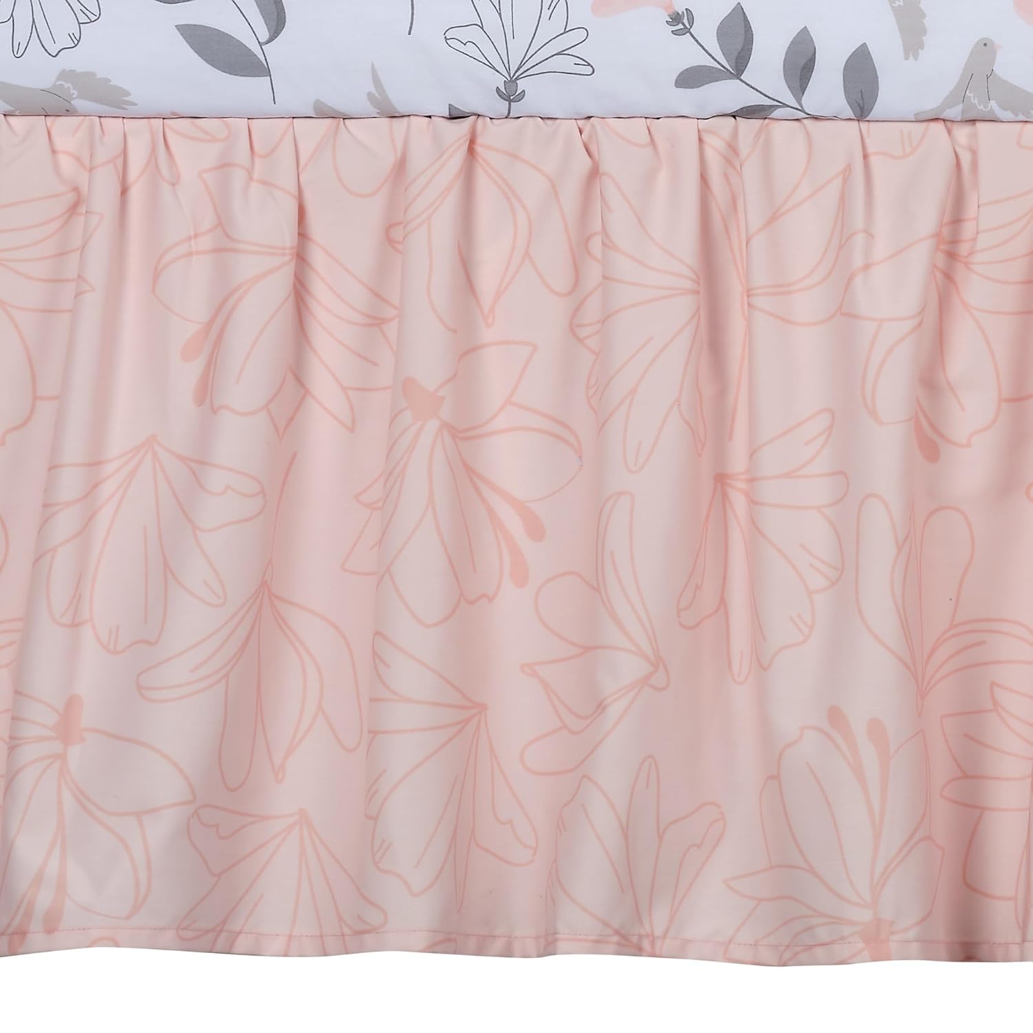 - Petal pink crib skirt with outlined flowers with a 14 Β½β drop