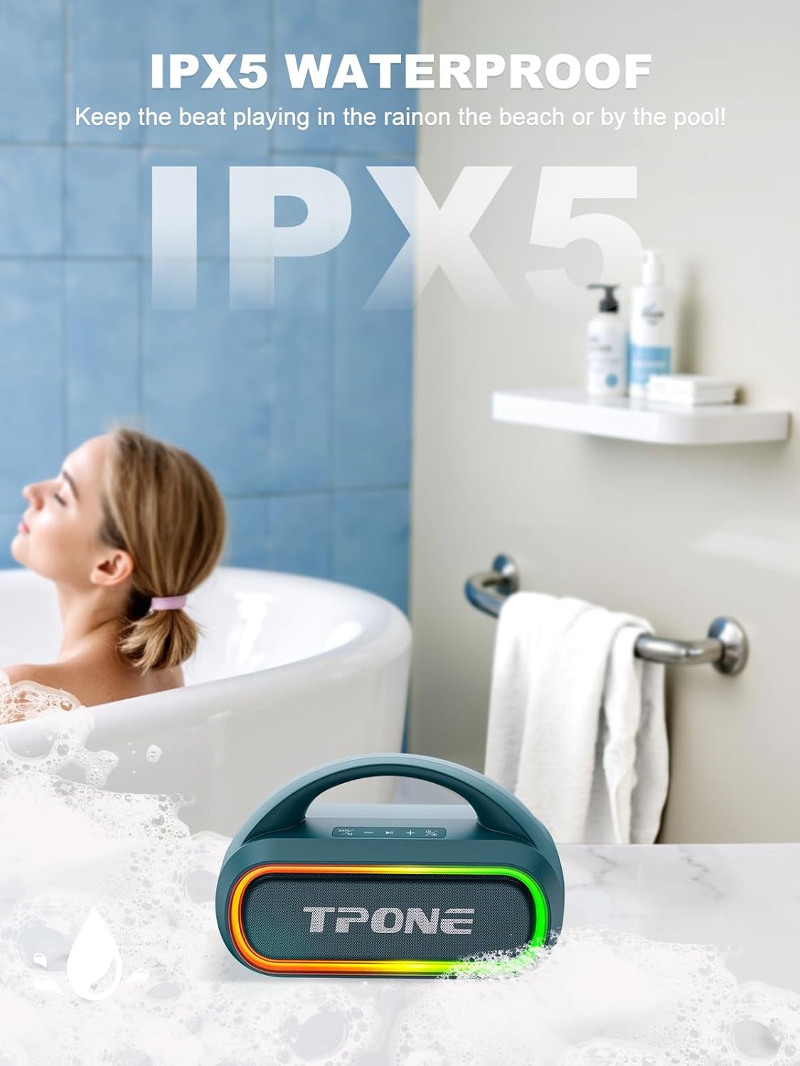 - 【IPX 5 Waterproof & Rugged Design】The XT-01 Portable Bluetooth Speaker is rugged for outdoor adventure and designed to deal with rough use and harsh weather conditions. This wireless Bluetooth speaker prevents rain, spill and splash. Great for family gatherings or pool parties, beach parties, barbecue, cycling, hiking, camping, etc.