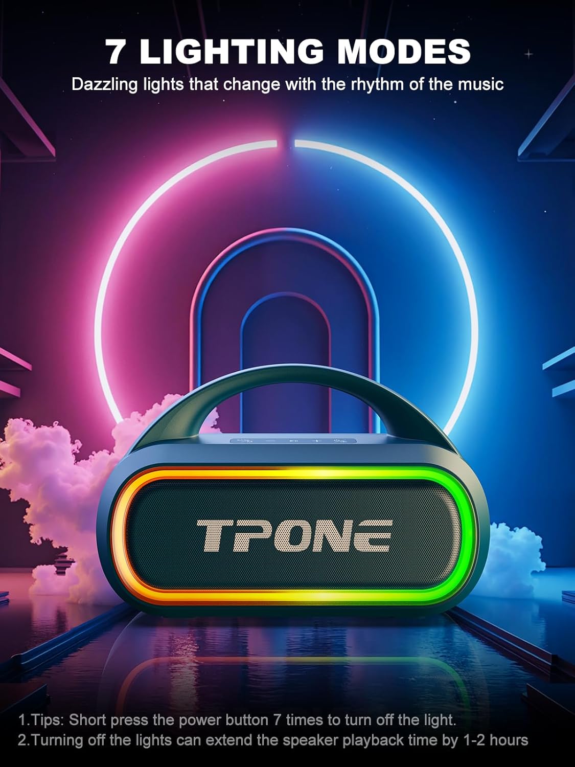 - 【Dynamic Color Light Show】Wireless LED bluetooth speaker is not only a speaker, but also a unique night theme light, with 7 light colors and 8 light modes, which provide different color-changing themes. Enjoy an exciting light show and dance to the rhythm of the music to add energy to your party.