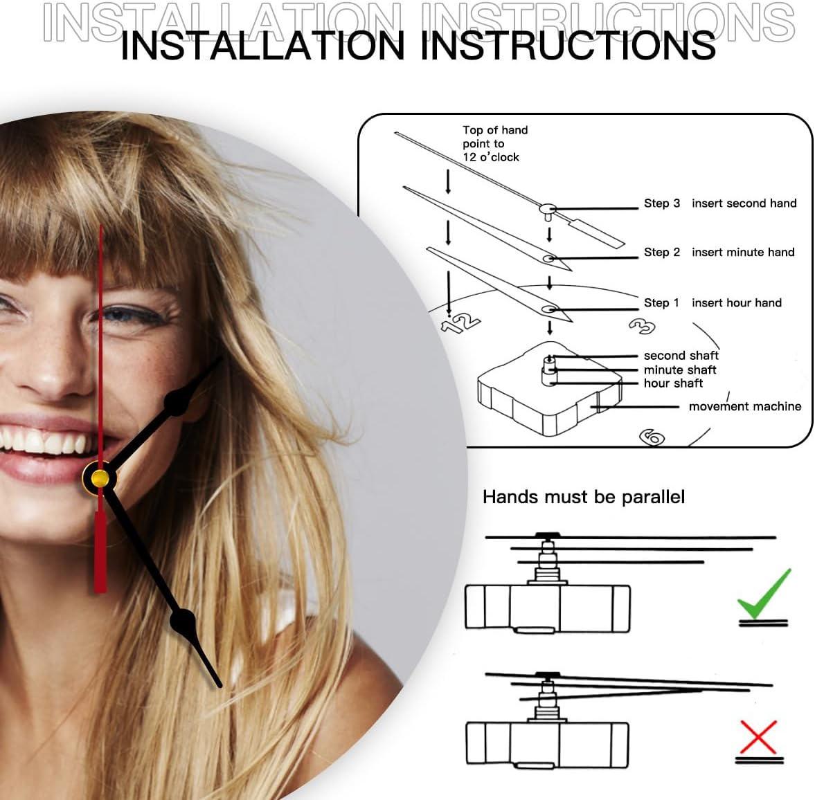 - 【Personalized pictures clocks】Please click the“customize now“button at upper,upload your customized photo and add text.Stretch photo to fill the entire printing area.Submit high definition images for better print results.