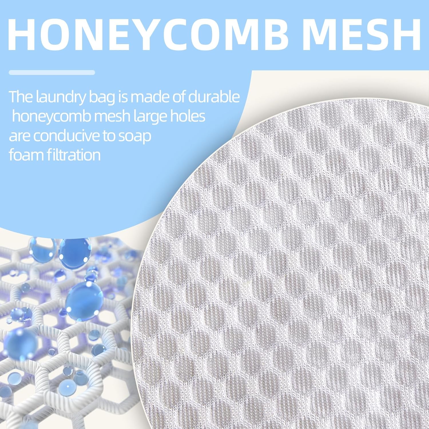- Materials: The laundry bag is made of durable polypropylene (125g honeycomb net), no deformation, each material and production are carefully selected and made by us, different from other 90g silk fabric more thick and durable, large honeycomb holes are conducive to soap foam filtration, specially for washing consideration
