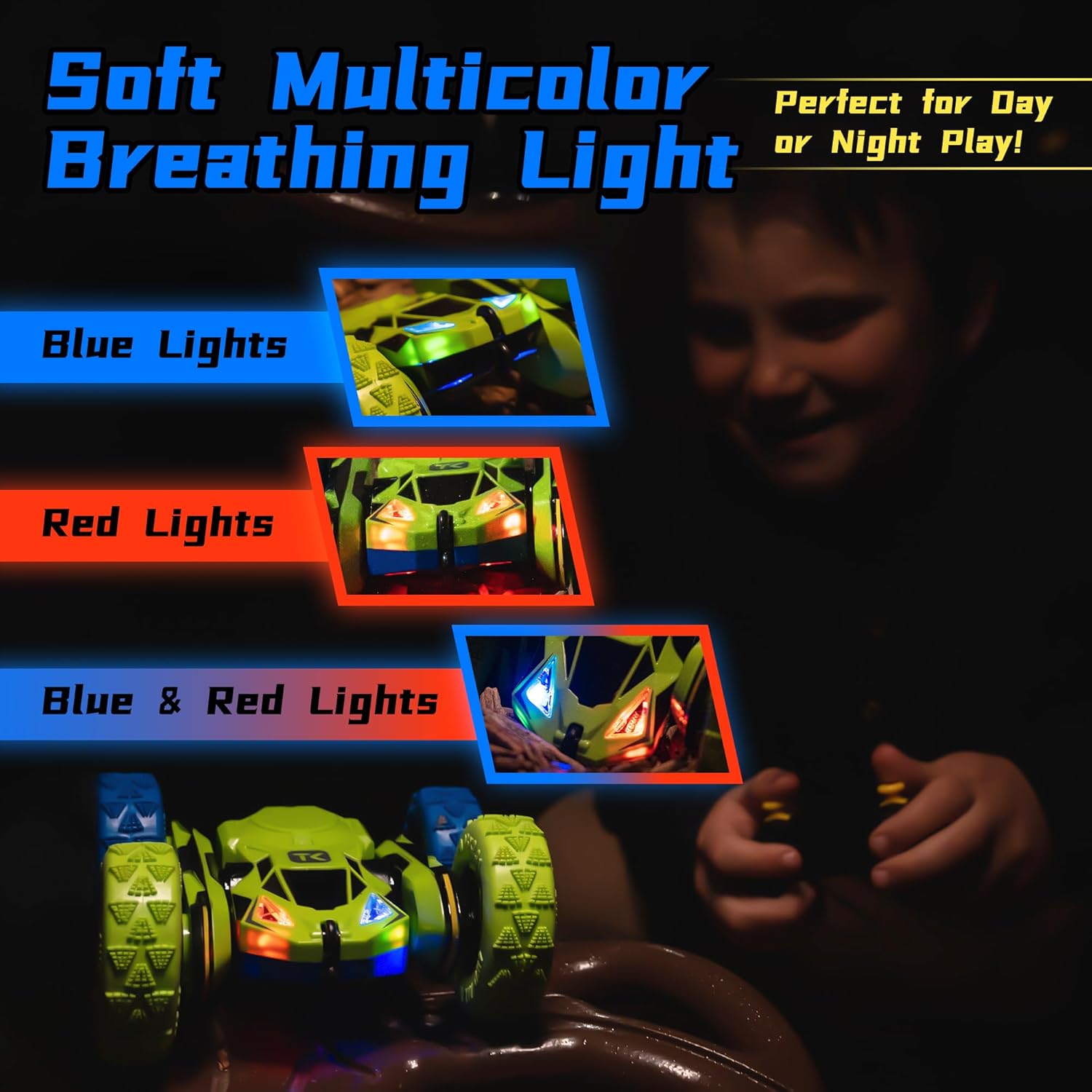 Threeking RC Stunt Car Remote Control Cars with Lights Double-Sided Driving Indoor Outdoor Toys Gifts Presents for 6 7 8 9 10 11 12 Year Old Kids Boys Girls