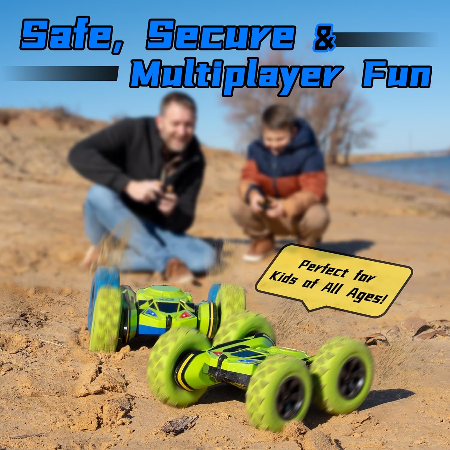 • TOYS THAT CHILDREN LOVE: In addition to the basic skills that ordinary remote control cars should have, stunt flips and double-sided driving will make it very easy to climb over small obstacles or around them and freed the car from the annoyance of model car rollovers.It will offer an exciting and versatile experience for kids. Nice presents for kids ages 6 to 12.