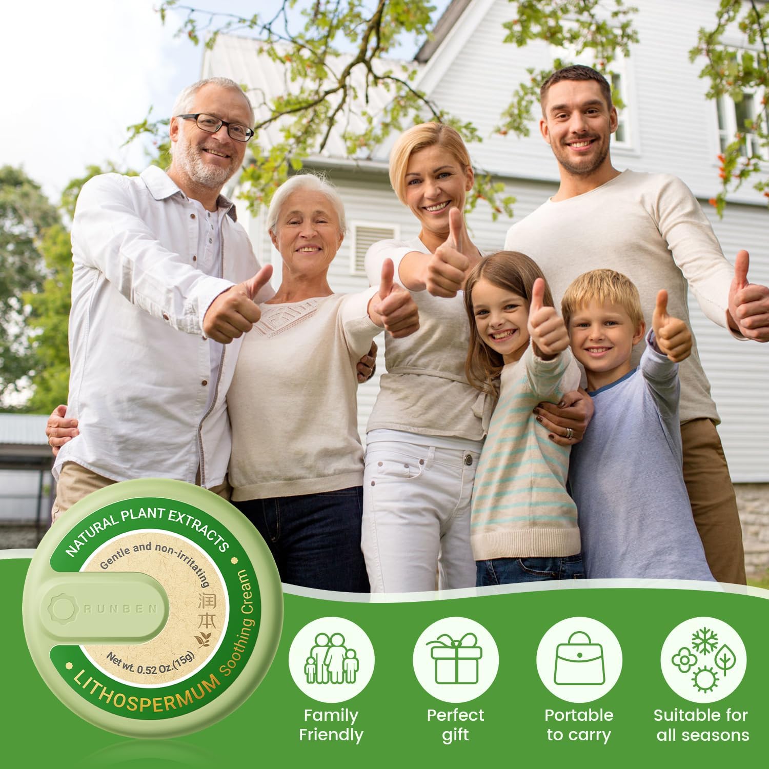 - 【RUNBEN】A well-known Chinese brand founded in 2006. Choose Lithospermum Soothing Cream, giving family peace of mind and comfort.