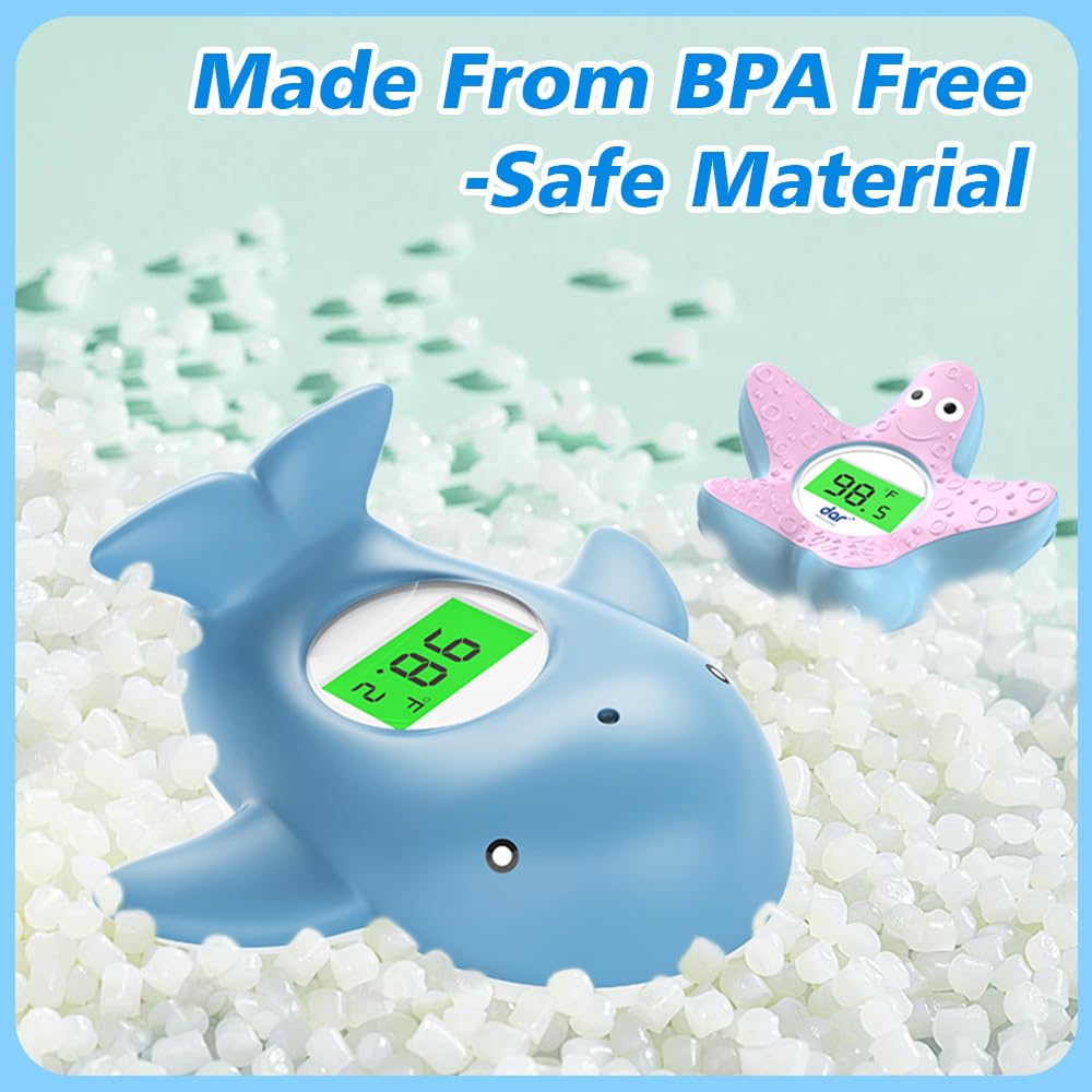Baby Bath Thermometer, Infant Digital Water Thermometer Safety with 3 Color Backlit and Temperature Warning, Room Thermometers Floating Toy for Infant, Toddler, Bathtub, Swimming Pool (Light Blue)