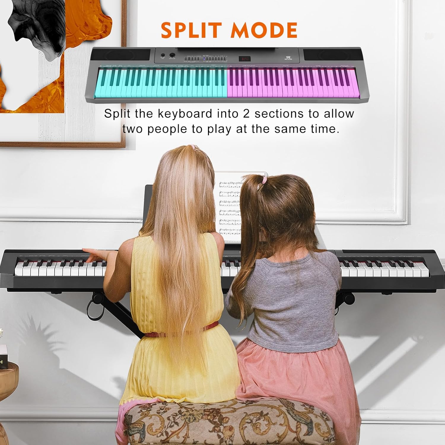 MUSTAR Digital Piano 88 Key Semi Weighted for Beginners, 88 Key Weighted Keyboard Piano with Stand, Full Size Electric Piano Keyboard 88 Keys, Build-in Speakers, Sustain Pedal (Gray-Light Up)