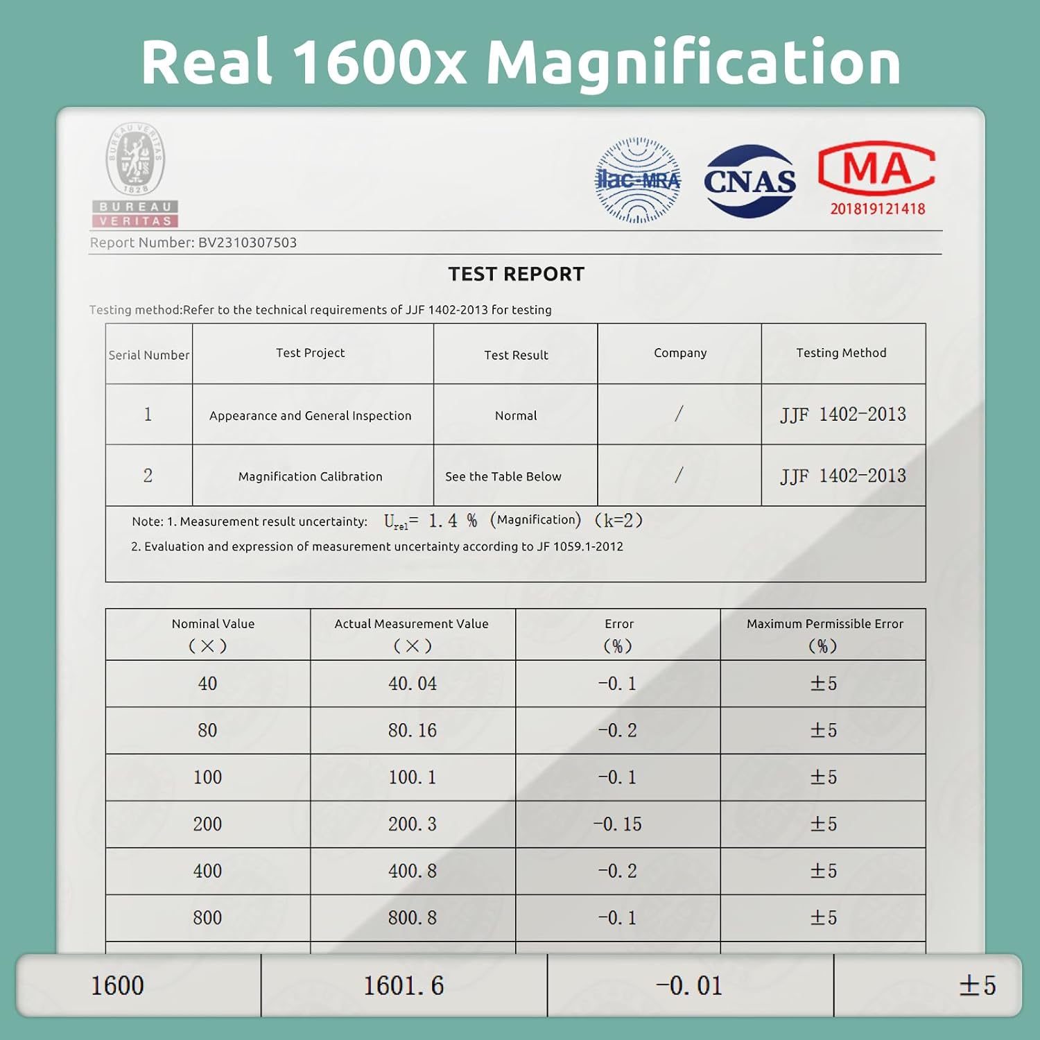 - Magnification Maximum : 1600 x