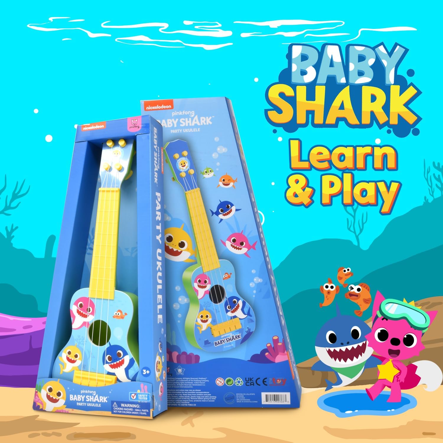 - Baby Shark Party Ukulele: This musical instrument is the perfect way to introduce your child to the world of music This 16 in baby shark themed guitar ukulele is the perfect size for small hands to carry and play
