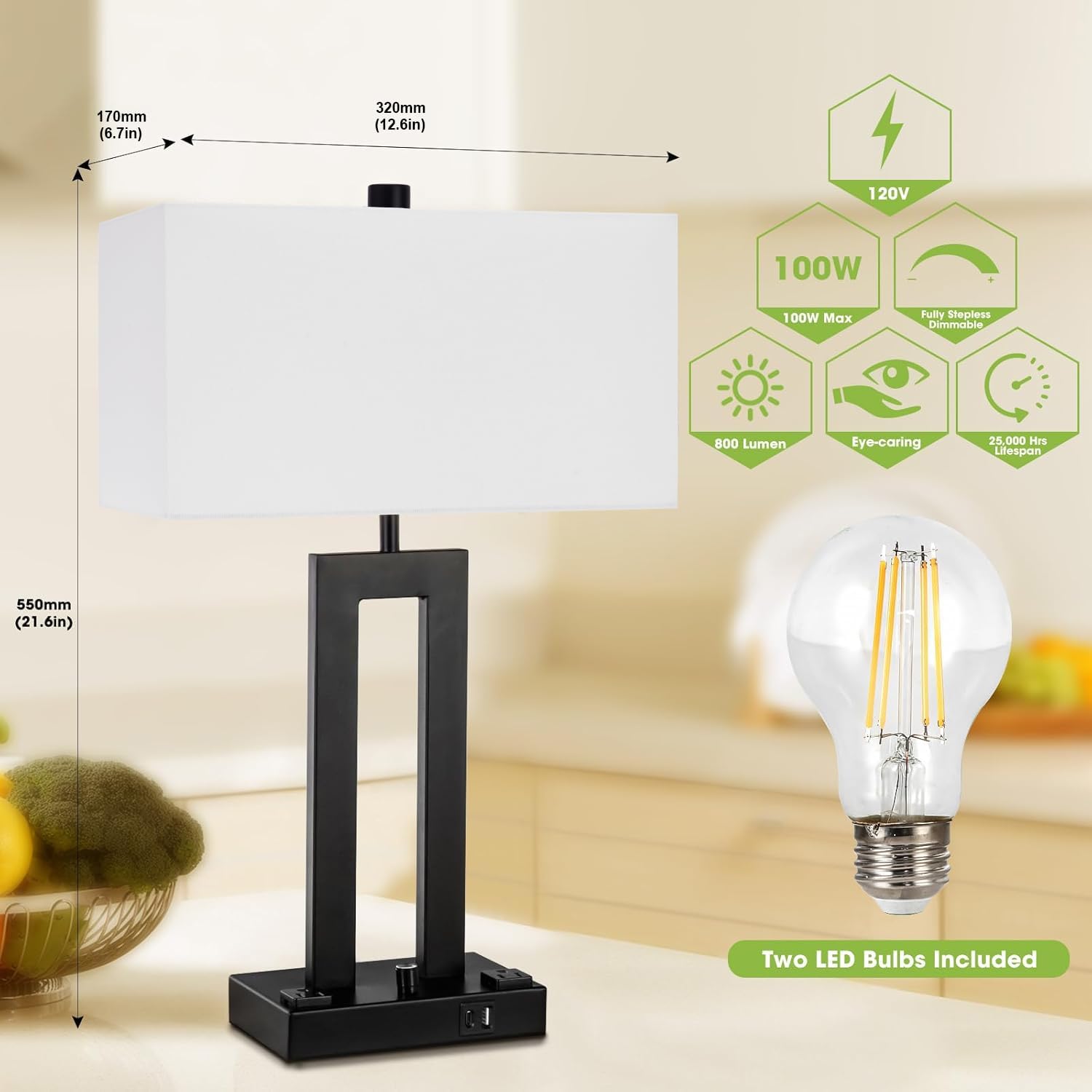 - 【Classic Design Matches All Styles】Designed with black finish poles and complemented with rectangle fabric lampshades, the table lamps will add long-last elegance to any styles such modern, minimalist, contemporary, industrial, traditional. Perfect for any space like bedroom, living room, end table, office, hotel, nursery room and guestroom as a daily decor, it becomes a atmosphere or ambient lighting in night!