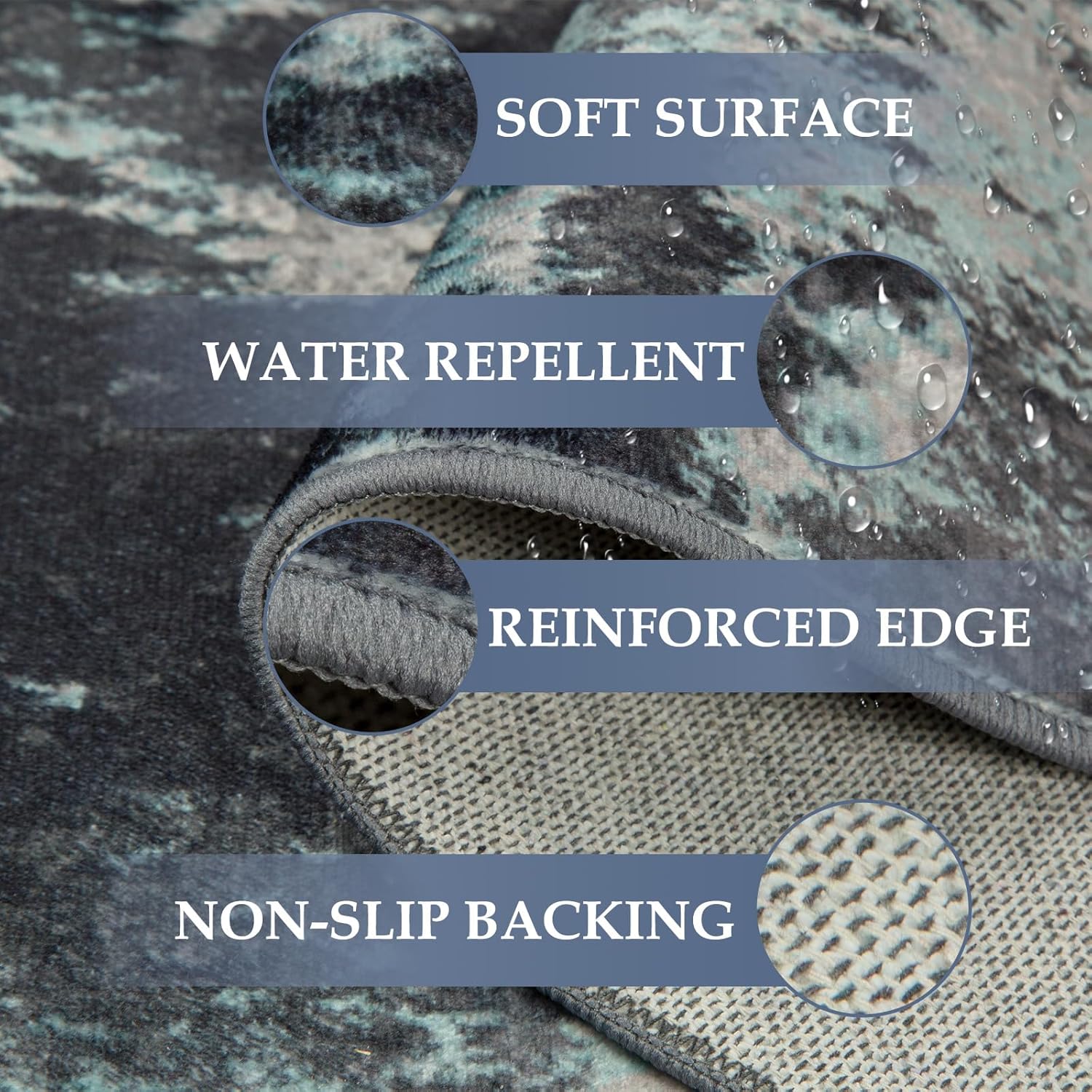 - Tides Series β Effortless style that flows with your life.This modern machine-washable non-slip rug features reinforced edges and a low-pile design that resists dirt. Its water-repellent surface makes spills easy to clean - liquids bead up for quick wiping. Simply machine wash in cold water (no bleach) to refresh. The non-slip backing keeps it securely in place. A perfect blend of function and contemporary design for active homes.