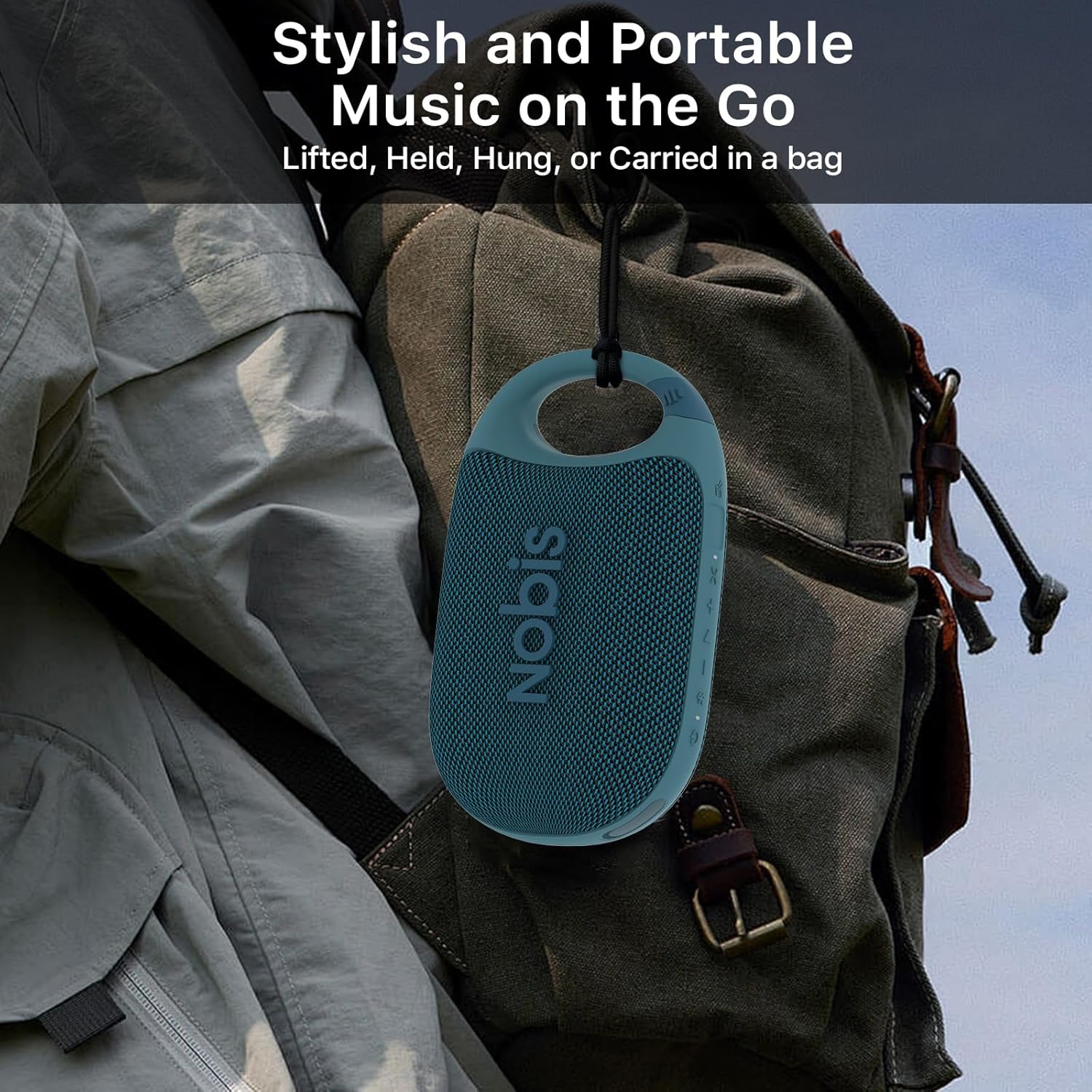 NOBIS Clip N1 Portable Bluetooth Speaker with App, Beat Mode, Up to 24H Playtime, IP68 Waterproof, BT 5.3, HD Sound, Stereo Pairing, Custom EQ, Perfect for Outdoor, Home and Adventure (Blue)