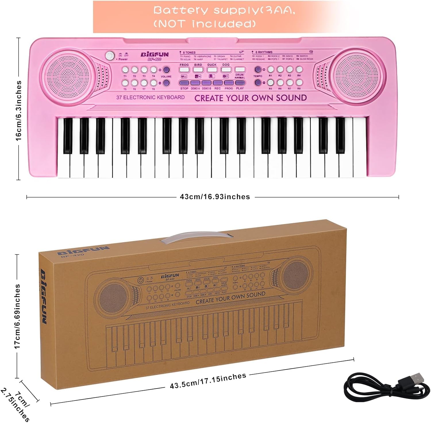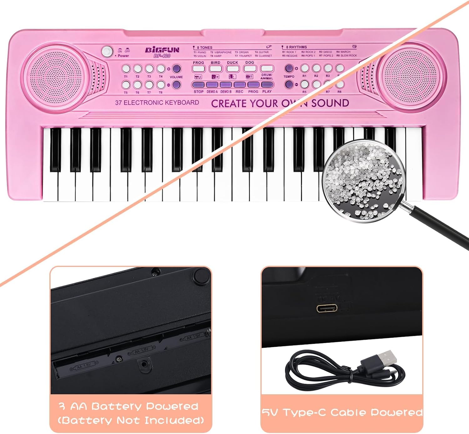 Raimy 37 Keys Keyboard Piano for Kids, Portable Keyboard Piano Early Learning Educational Electronic Musical Instrument Toys Gifts for 3 4 5 6 7 8 9 Year Old Boys and Girls (Pink)