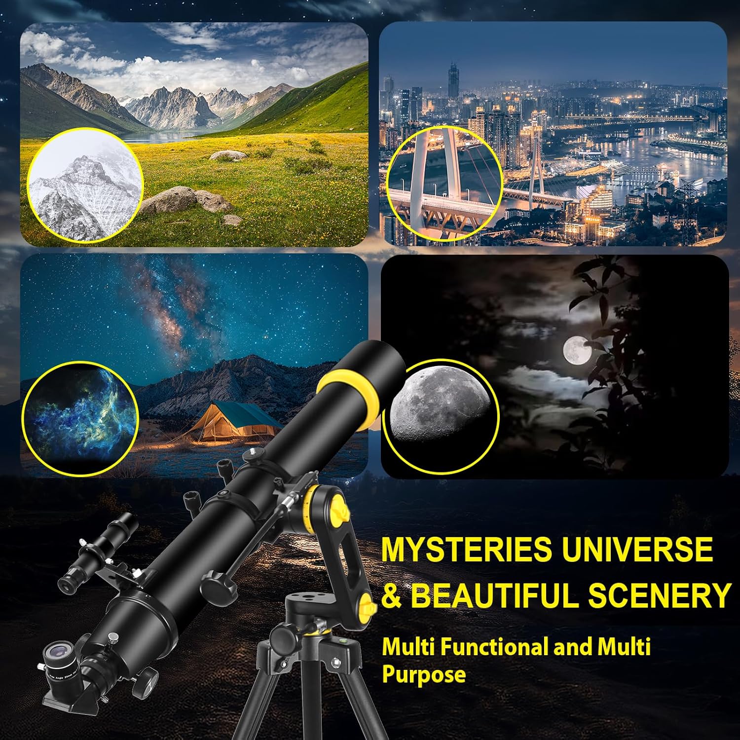 - High-Performance Optics: Equipped with a 90mm aperture and a 1000mm focal length, brings 50x-100x magnifications. This telescope delivers bright, clear images of planets, stars, and galaxies, providing an immersive stargazing experience.