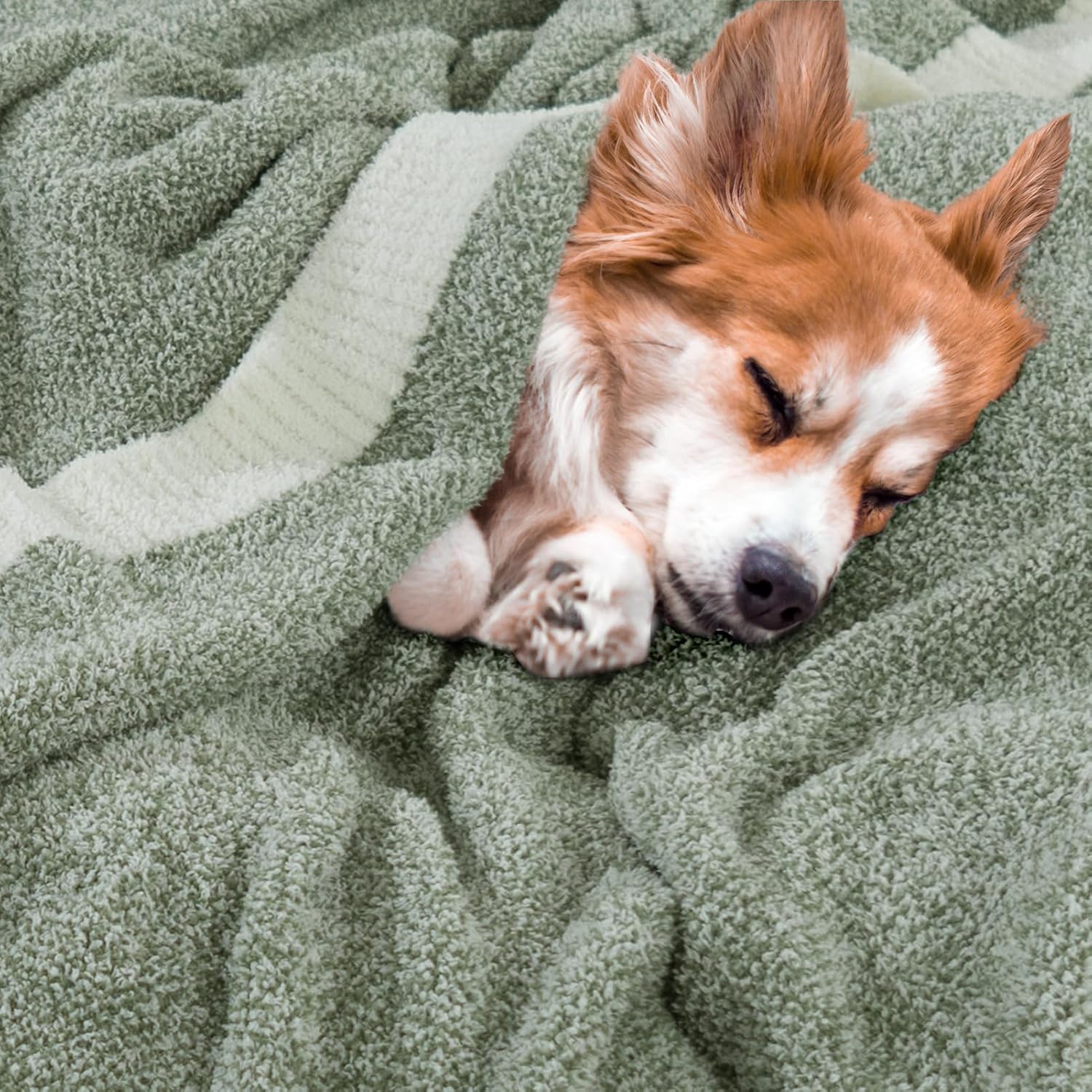 NEXHOME PRO Twin Size Super Soft Throw Blankets for Couch, Cozy Blankets Reversible Warm Knit Blanket for Women, Fuzzy Plush Lightweight Throws for Sofa, Bed, Picnic, Sage Green White, 60 x 80 inches