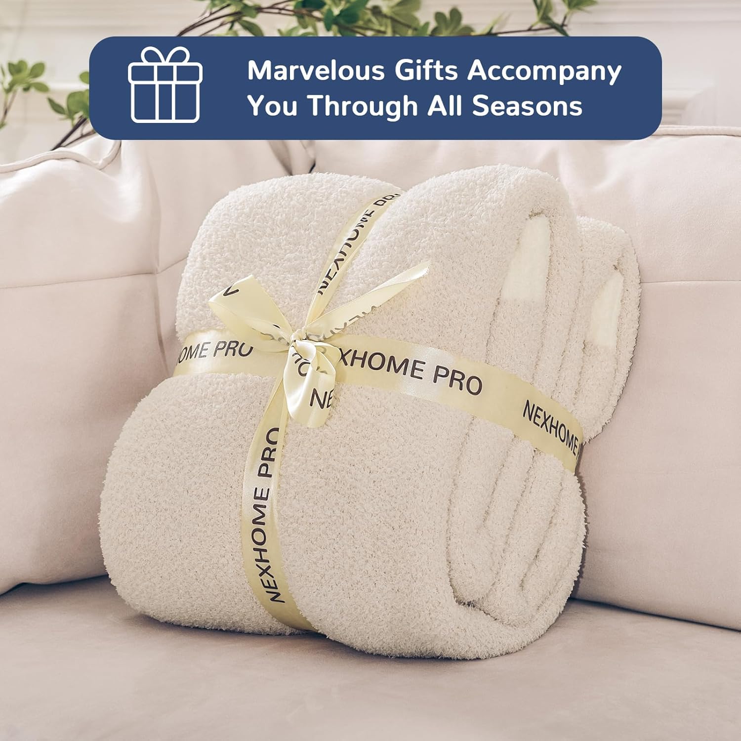 NEXHOME PRO Super Soft Blanket for Women, Cozy Blanket Warm Reversible Knit Lightweight Throws for Couch, Sofa Bed, Picnic, Heather Ivory, 50 x 60 inches