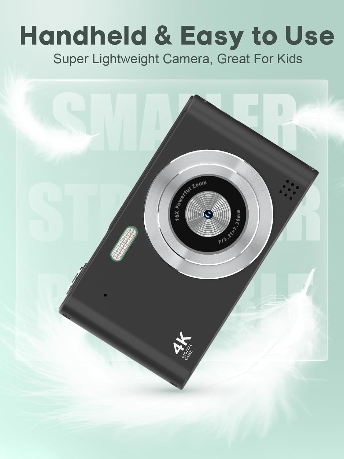 - 【Gift for Camera Beginners】The digital camera is easy to operate and is very suitable for camera beginners. Small camera can also be used as a kid camera, used to cultivate photography interests in children over 6 years old. Ideal for gifting on holidays like Christmas, Thanksgiving, Birthday. it's ideal for gifting on holidays like Christmas and Thanksgiving, as well as for birthdays, graduations, and Valentine's Day
