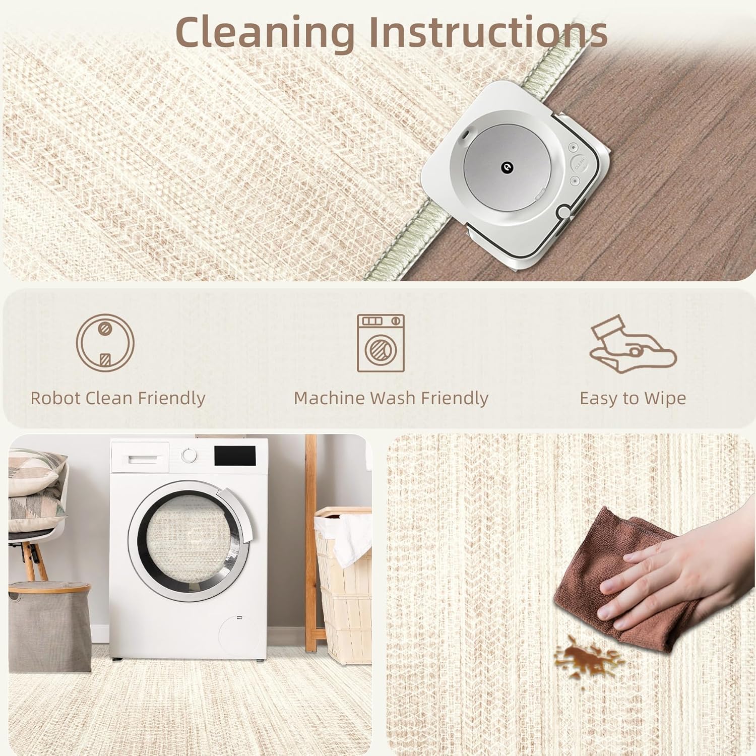 - Machine Washable Rug: Our 2x3 washable rug has stain and splash-resistant properties. Use a broom or vacuum cleaner to Clean up or hair for daily care. The rug can be washed directly in the washing machine in cold water, making cleaning a breeze.(Please remember not to use bleach!)