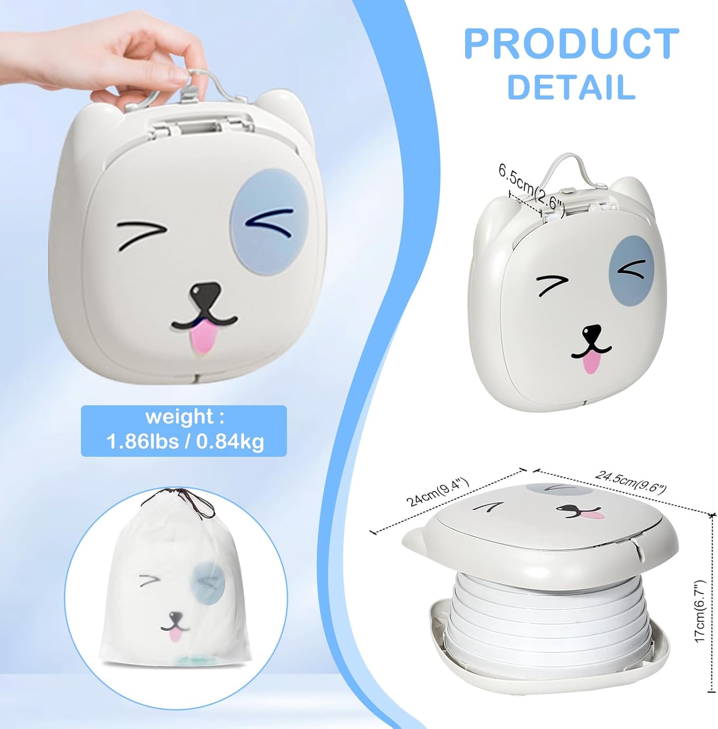 - 【Easy to install】No need for assembly, this travel potty is very easy to use,After opening the toilet, rotate it and press it down to lock it in place before use. After use, simply lift it up to unlock it, then rotate it to complete the folding
