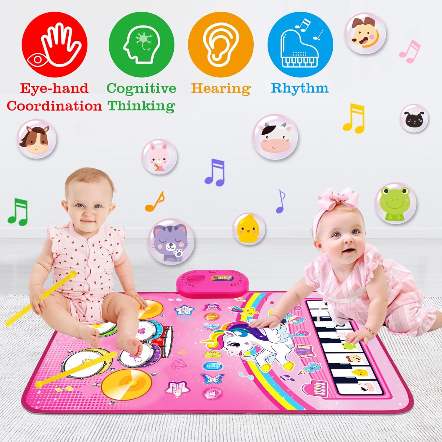 Toys for 1 Year Old Girl Gifts: Baby Music Mat Toddler Toys Age 1-2 - 3 in 1 Piano Drum Animal Touch Unicorn Toy - Infant Musical Toy 12-18 Months Babies Birthday Easter Gifts for 1 2 3 Year Old Girls
