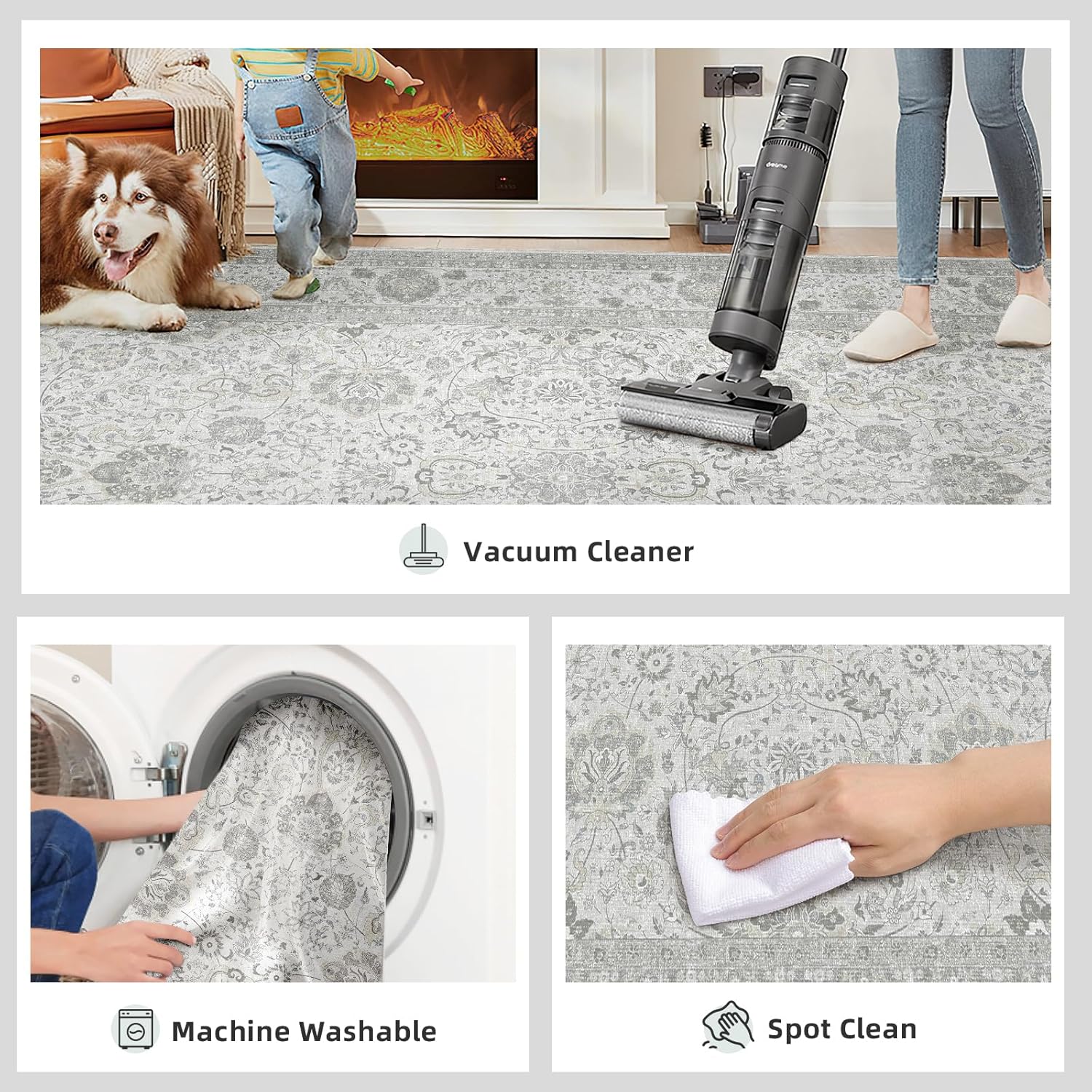 Deerly Light Grey Vintage 6x9 Nursery Rugs for Living Room, Rug Boho Washable Area Rug with Non-Slip Backing, Indoor Carpet for Bedroom Dining Room