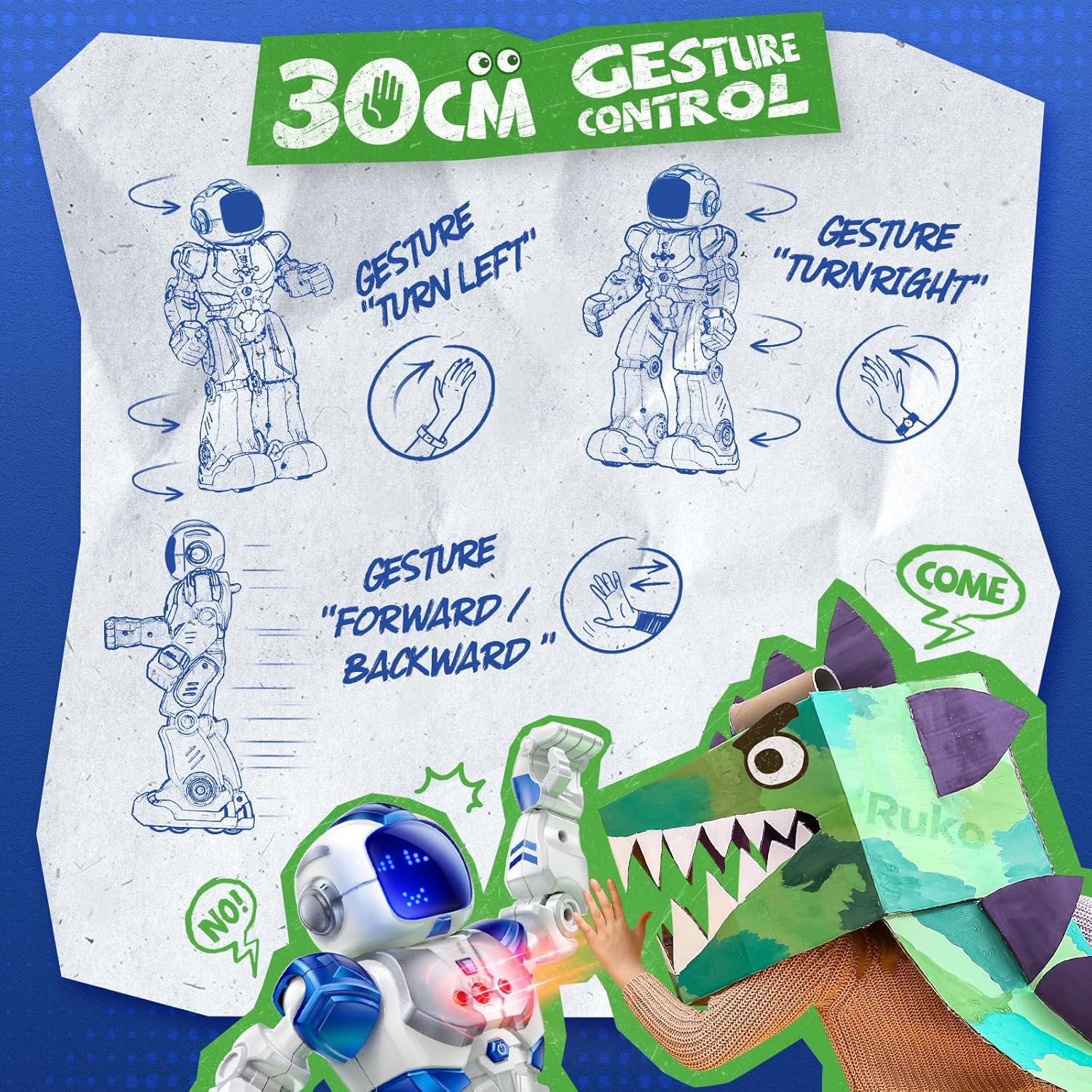Ruko 6088 Programmable Robot with APP Control, Remote Control, Gesture Sensing Control, Rechargeable Robots Toys for Boys and Girls, Interactive Emoji LED Eyes, QA Games for 3 4 5 6 Years Kids, Blue