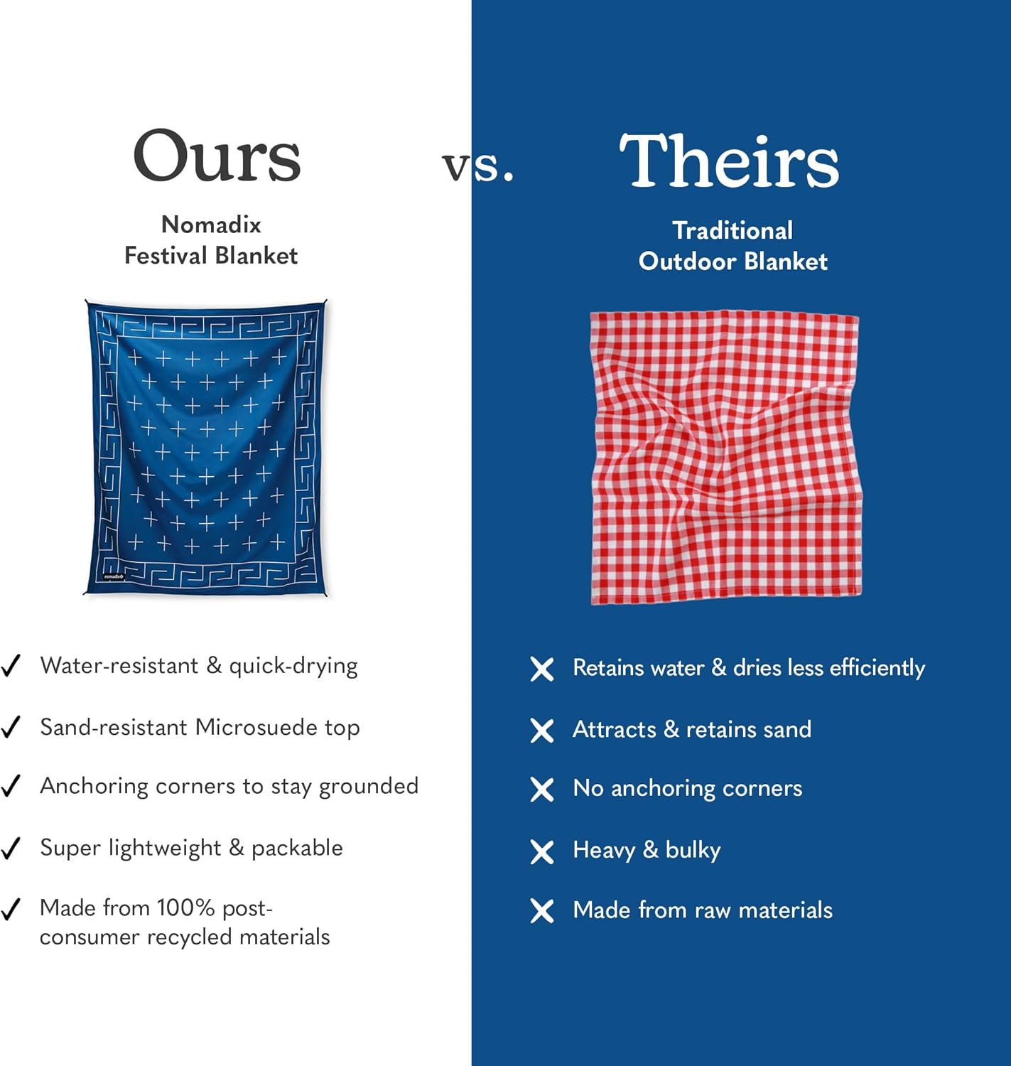Nomadix Festival Blanket - Perfect for Picnics, Camping, & Lawn Seating - Plush Top & Water Resistant Base - Made with Post Consumer Recycled Materials - Barton Blue - 60x70